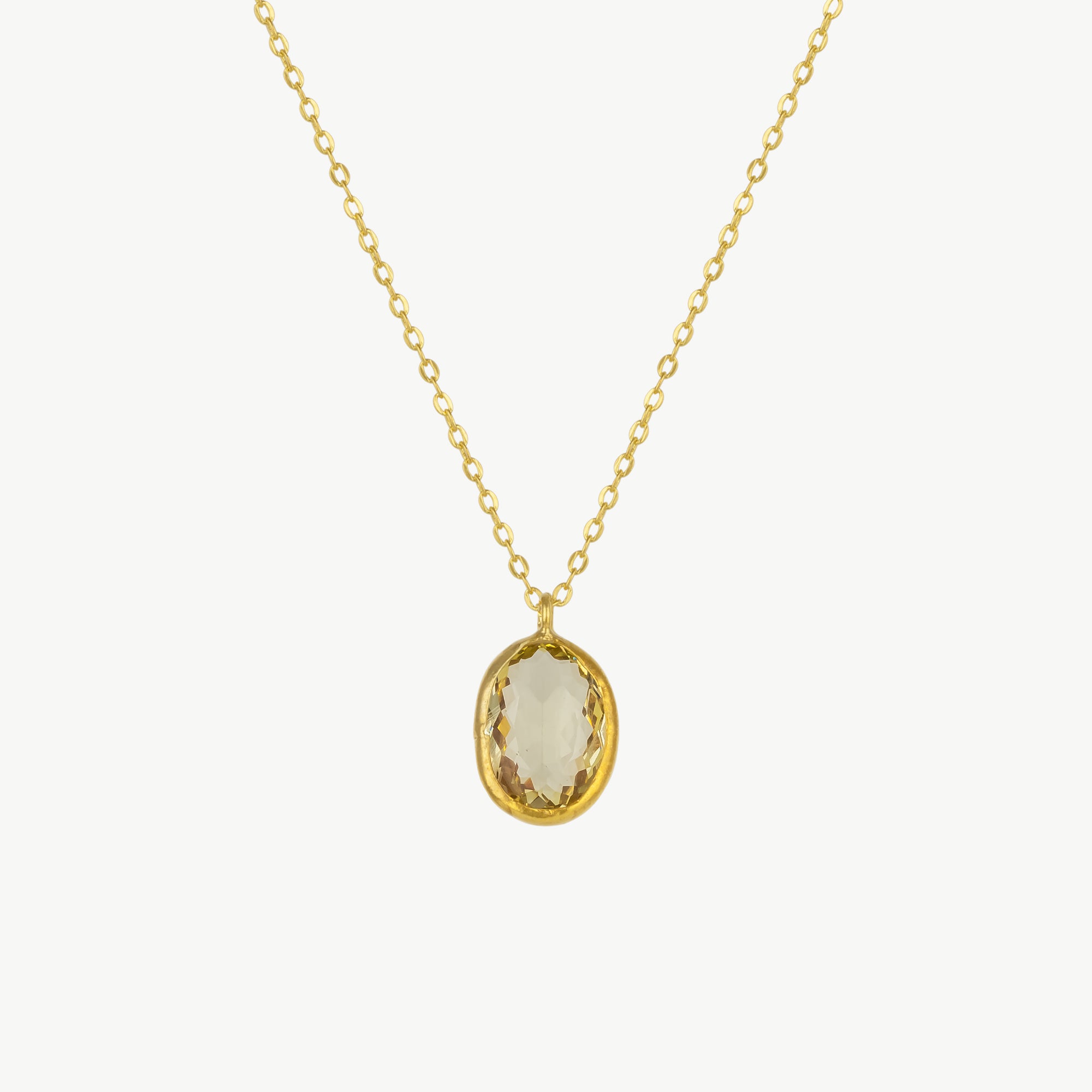 Abstract Oval Gem Gold Pendant Necklace - Champagne