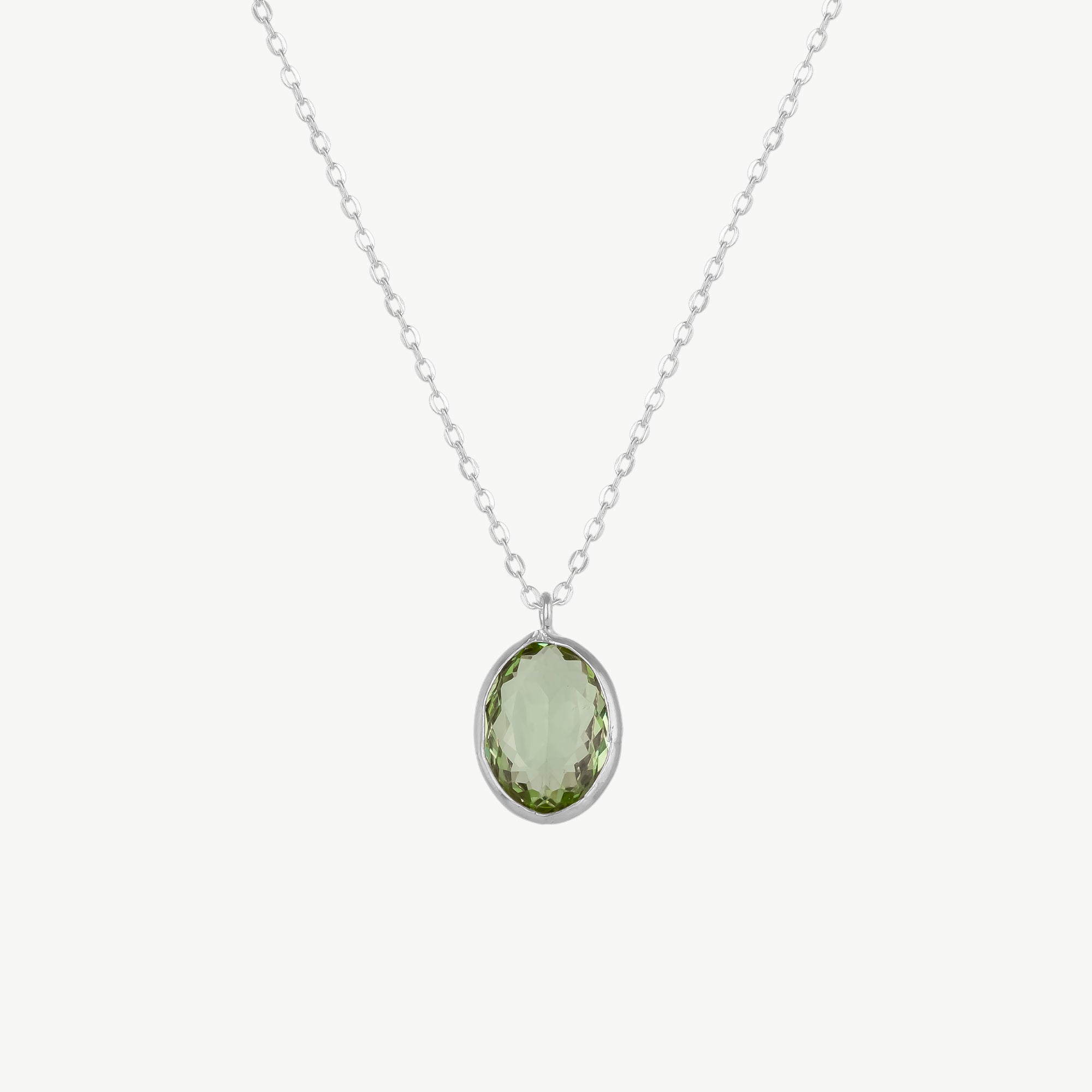 Abstract Oval Gem Silver Pendant Necklace - Aqua Green