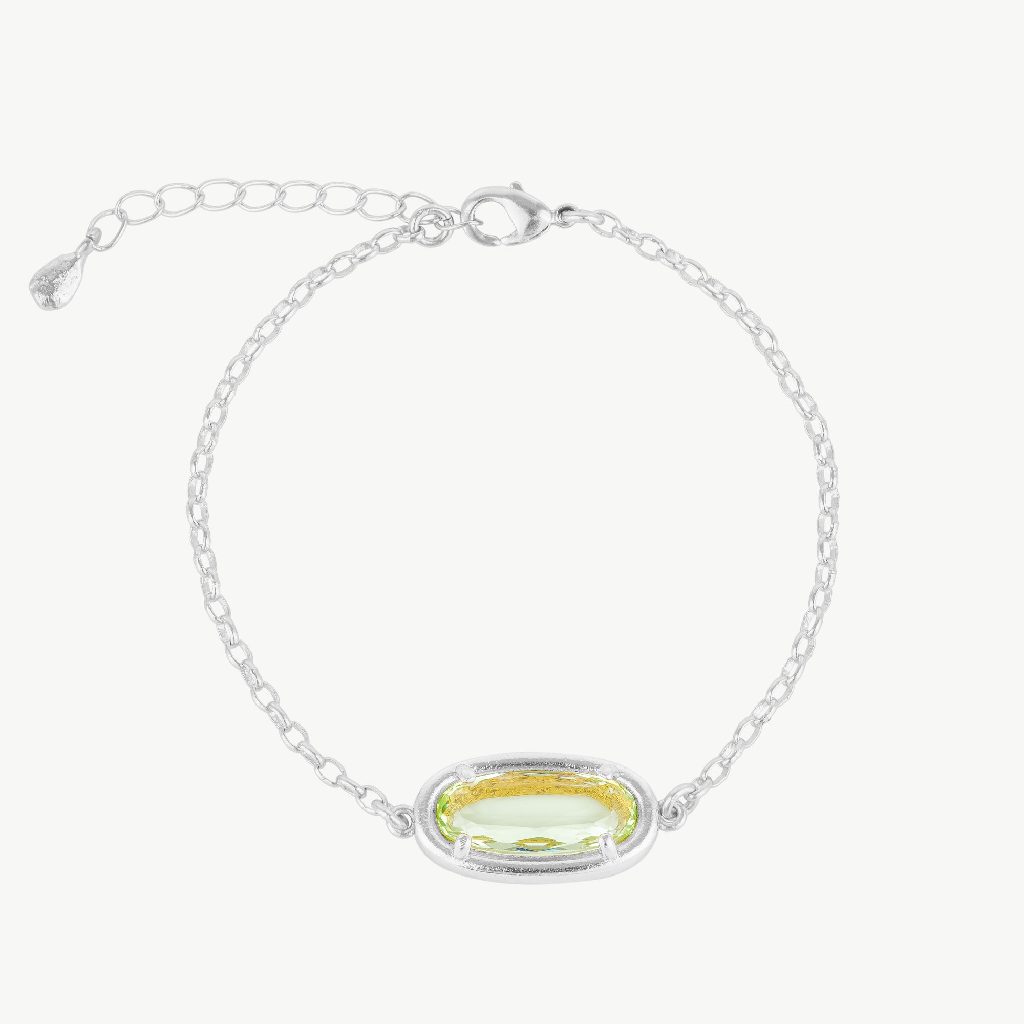Unleash your inner creativity with our Abstract Oval Gemstone Silver Bracelet in Aqua Green. Made with stunning aqua blue gemstones, this bracelet adds a pop of color to any outfit. The unique abstract oval design is eye-catching and adds a touch of sophistication. Elevate your style and express yourself with this one-of-a-kind piece.