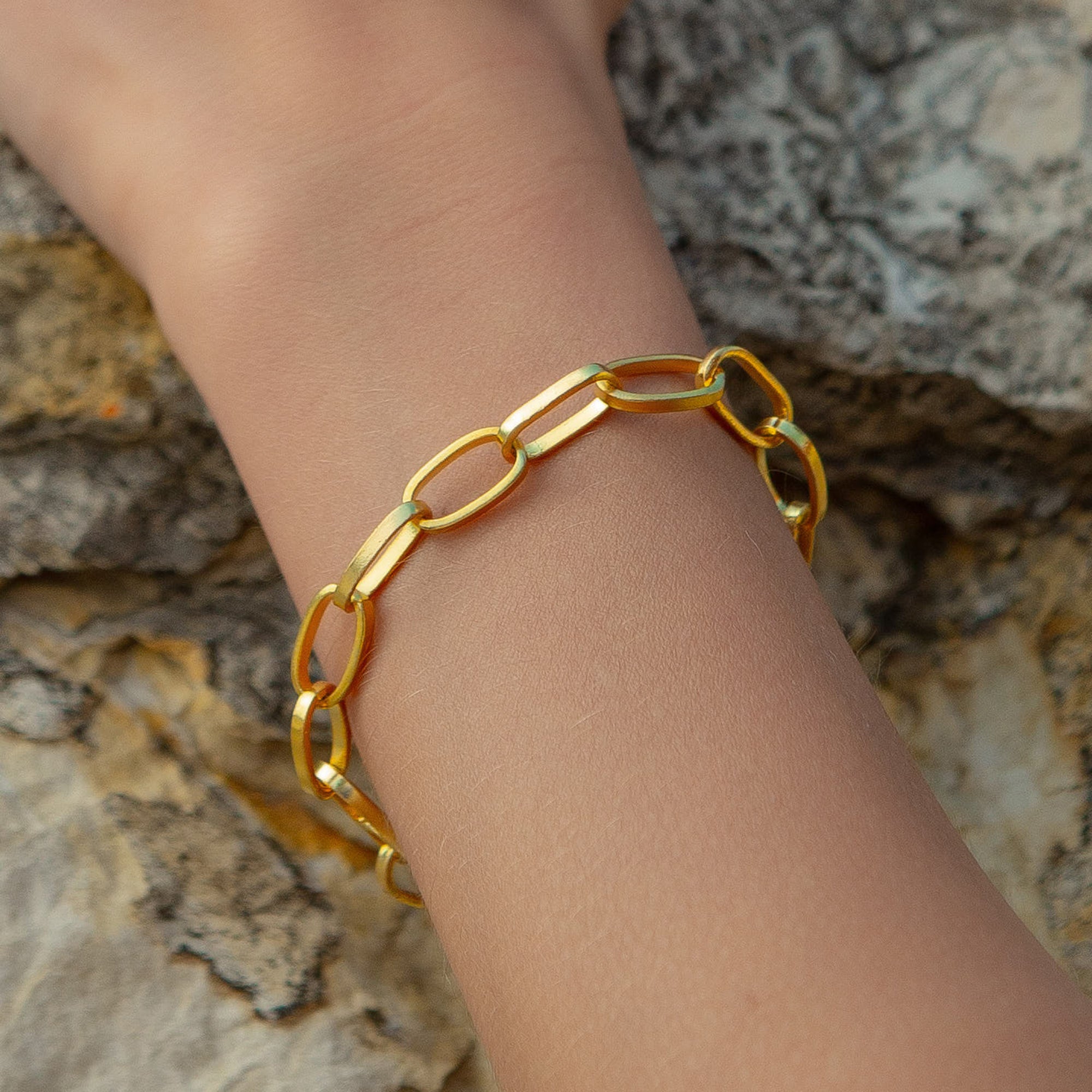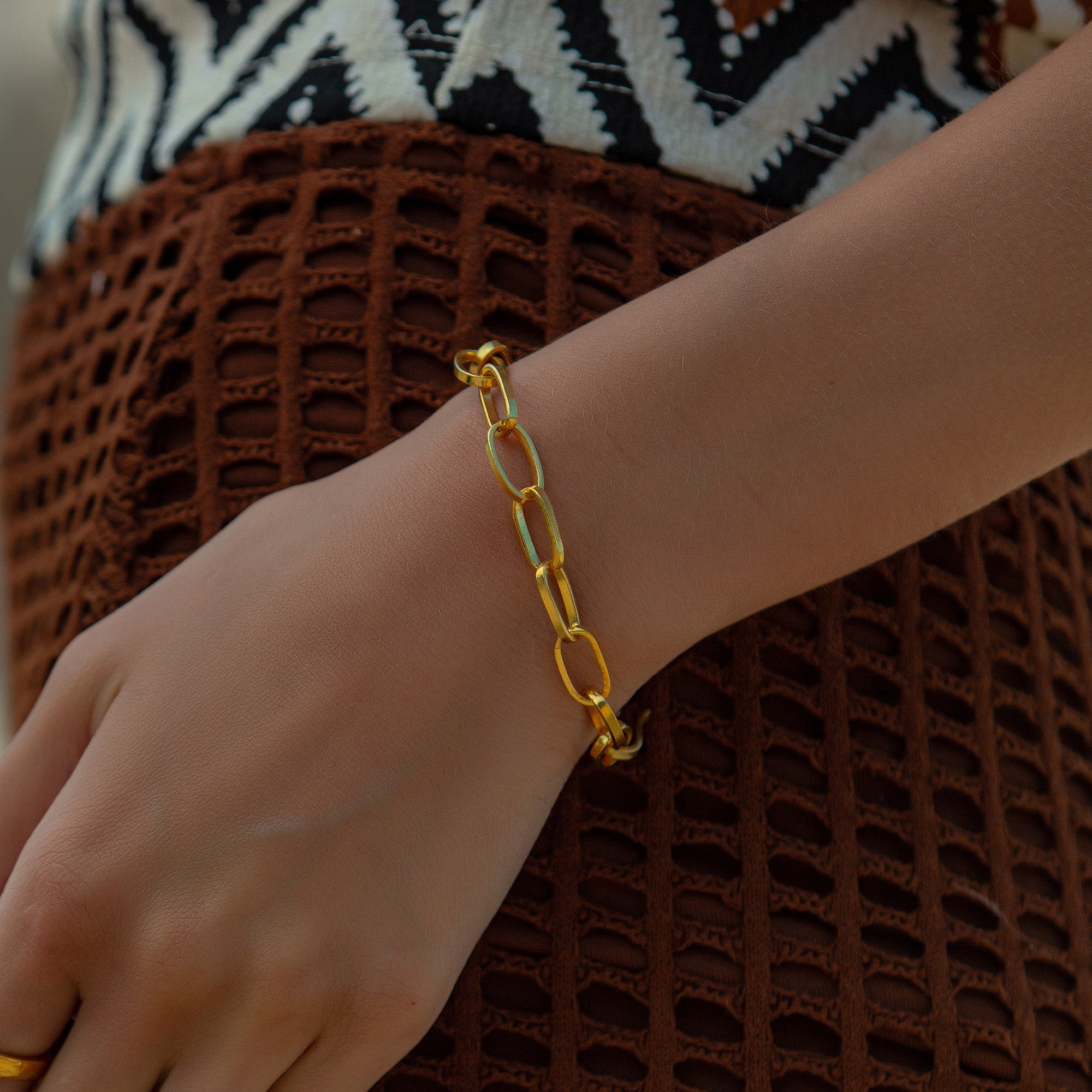 Elevate your style with our Adjustable Large Gold Chain Bracelet! With its stunning design and versatility, this bracelet is the perfect accessory for any occasion. The adjustable feature ensures a comfortable fit for all wrist sizes. Add a touch of luxury to your outfit with this must-have statement piece.