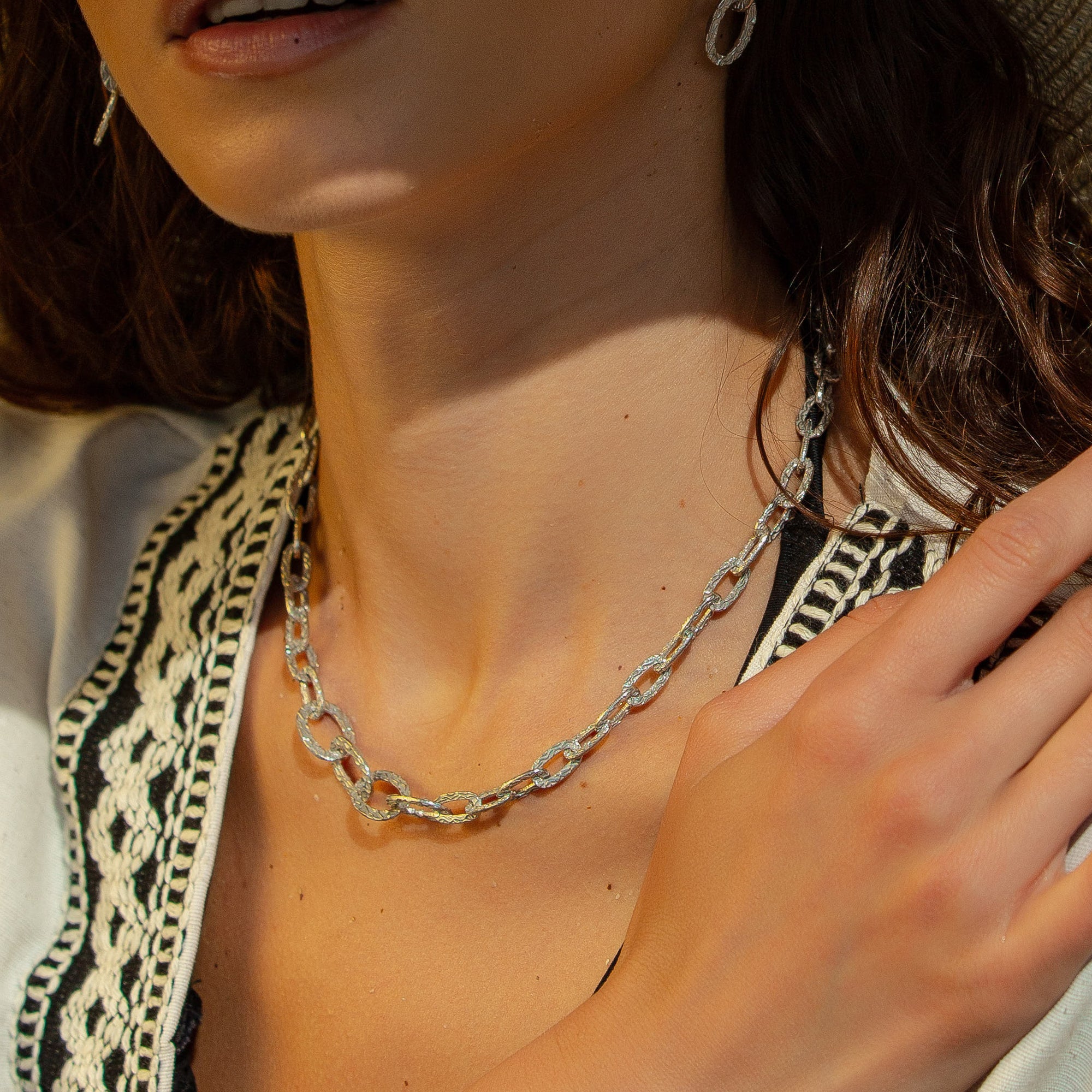 Ancient Allure Textured Silver Link Necklace