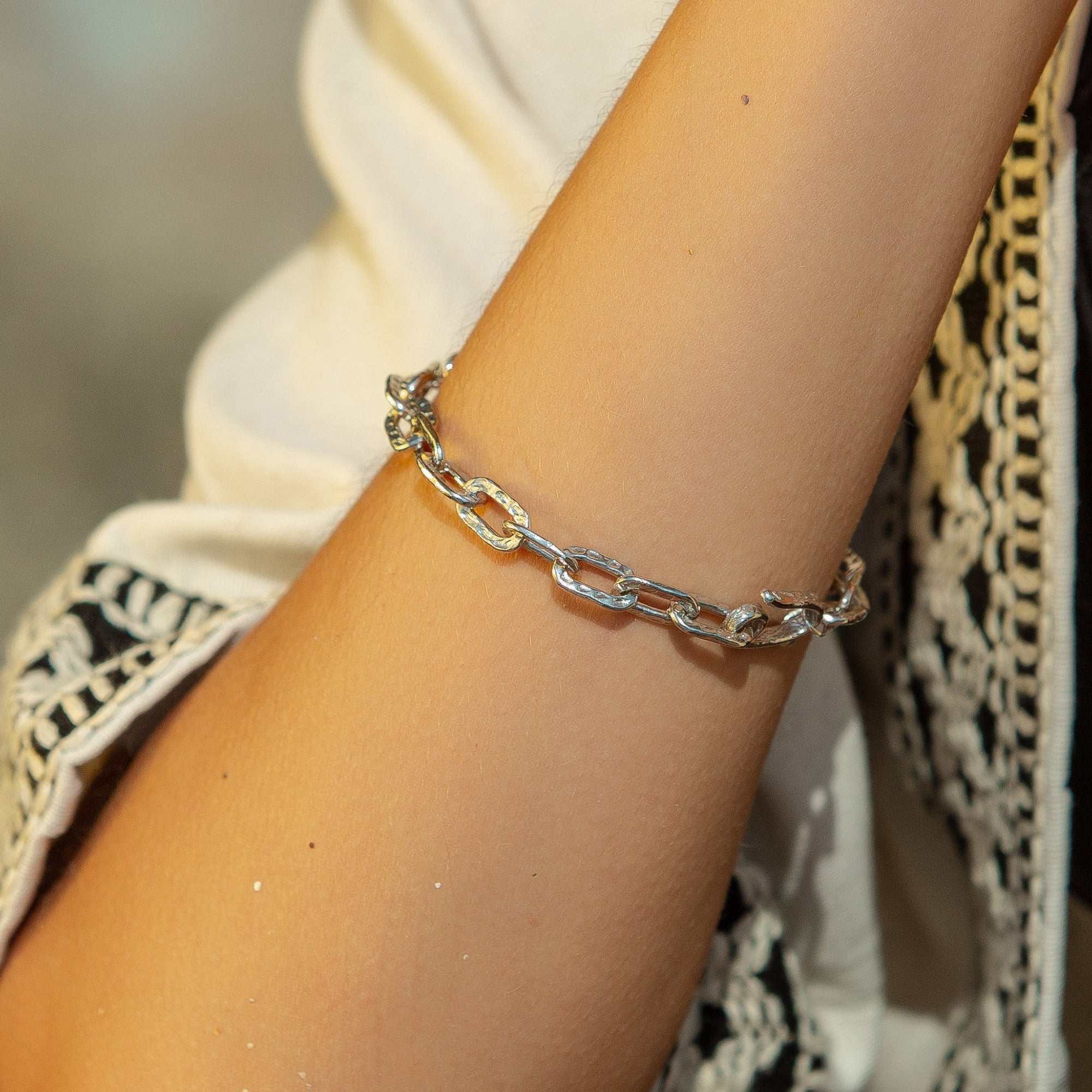 Embrace timeless elegance with our Ancient Elegant Radiance Chunky Silver Chain Bracelet. The 7,5 inch adjustable feature allows for a perfect fit from anywhere. Make a statement with this luxurious piece and elevate your style to new heights.