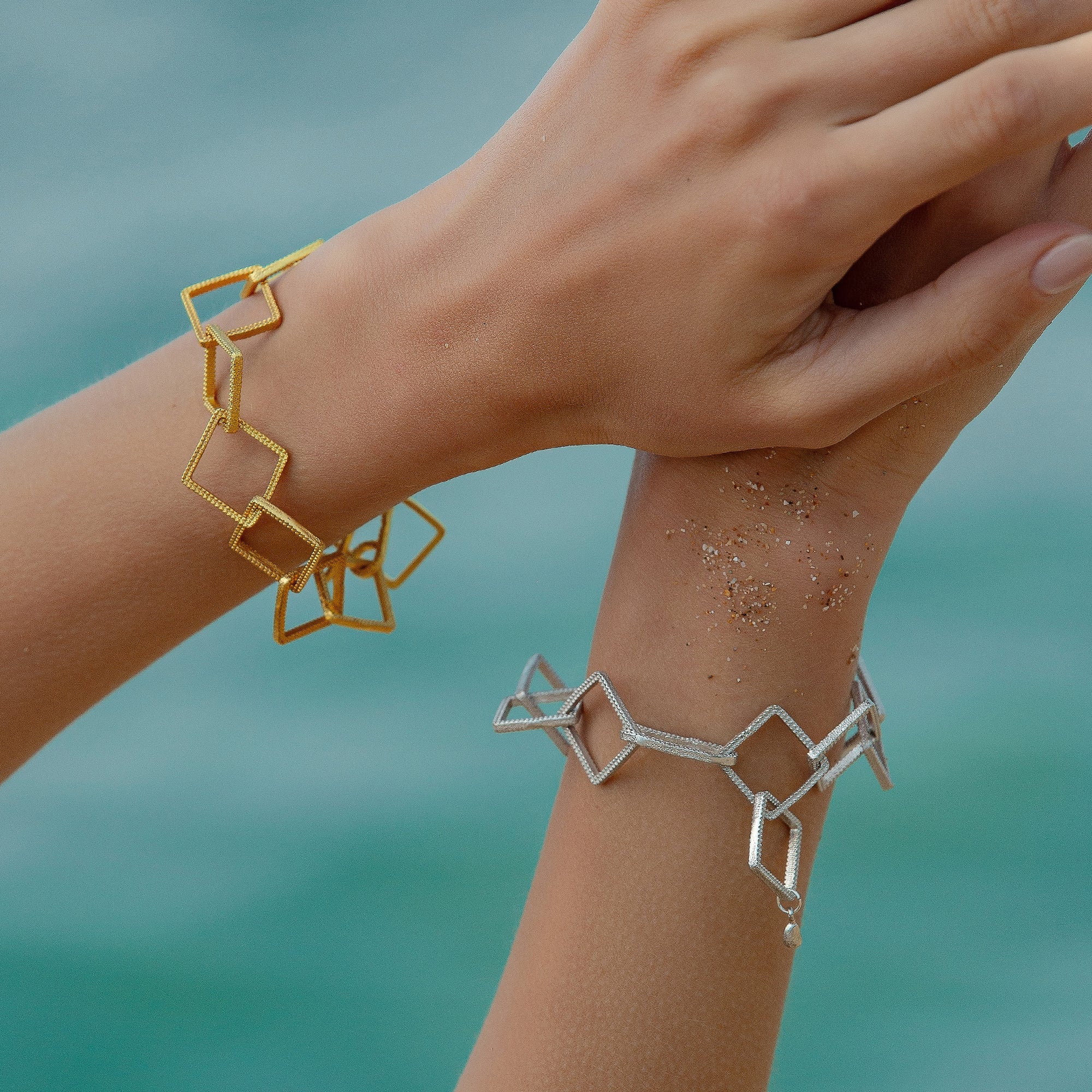 Unleash the mystique of ancient geometry with our captivating silver chain bracelet. Crafted from perfectly formed squares, this bracelet brings a touch of elegance and sophistication to any outfit. Embrace the grace and timeless charm of this unique piece and make a statement that will turn heads.