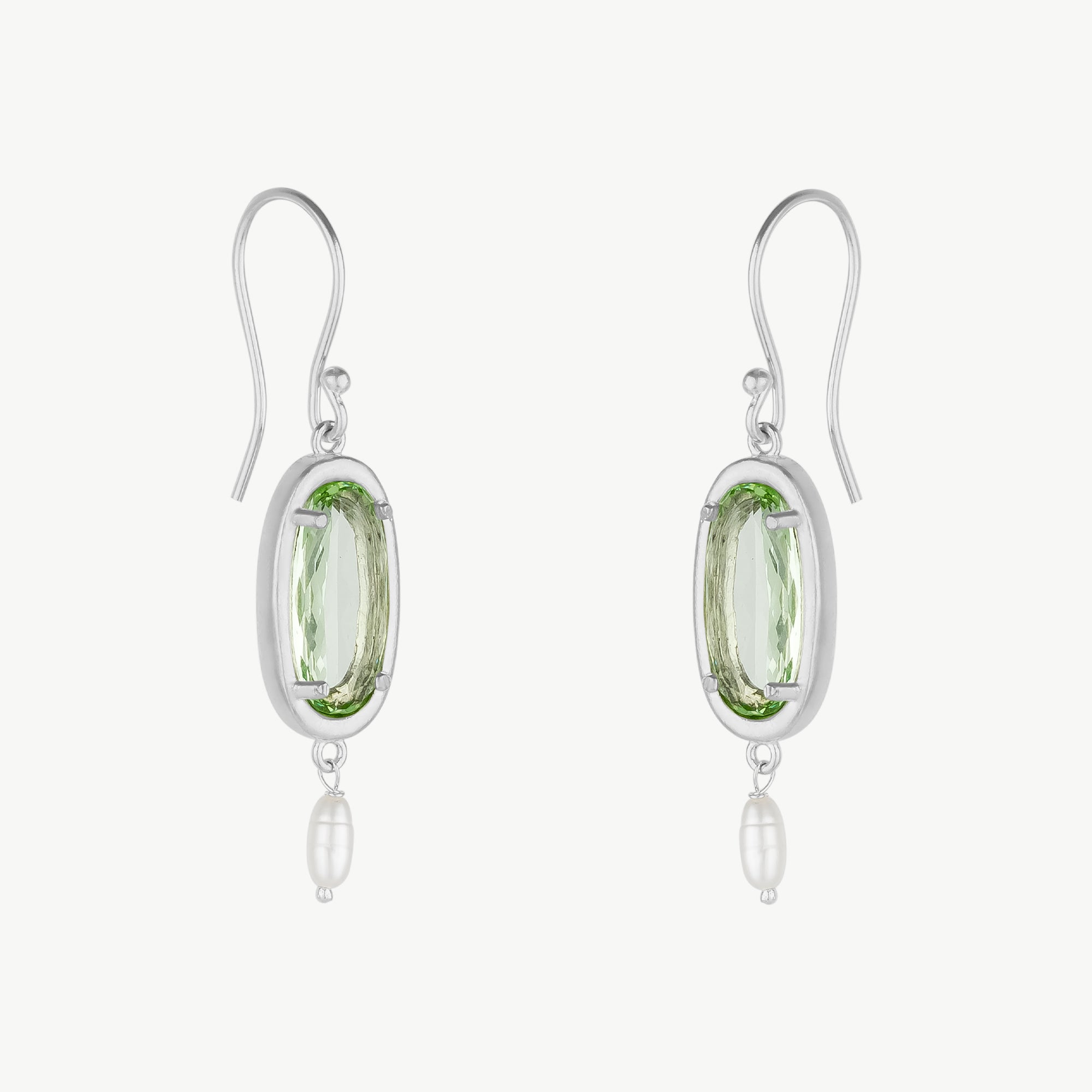 Aqua Green Gemstone Tiny Pearl Silver Earring