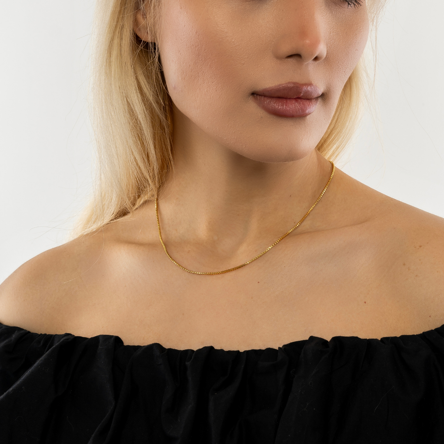 Elevate your style with our Cubicle Box Chain Gold Necklace! Featuring a sleek and modern design, this necklace is the perfect addition to any outfit. Made with high-quality materials, it exudes luxury and sophistication. Make a statement and stand out from the crowd with our stunning Cubicle Box Chain Gold Necklace.
