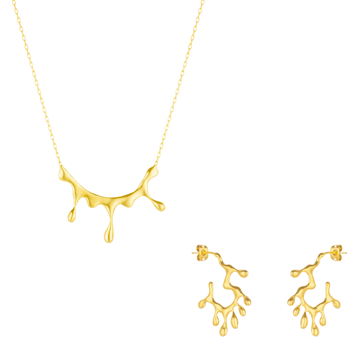 Elevate your experience: Purchase the set and save today! Drip in luxury with our Dripping Gold Melting Necklace and Earring Set! This elegant set exudes sophistication and style, making it the perfect addition to any outfit. Crafted with high-quality materials, our necklace will shine and sparkle on any occasion, leaving a lasting impression. Elevate your look and make a statement with our Dripping Gold Melting Necklace.