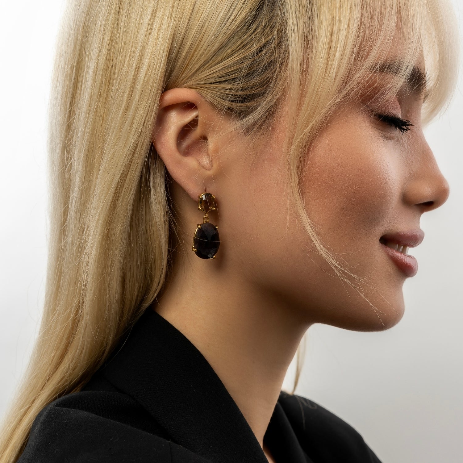 Indulge in elegance with our Drop Purple Gemstone Gold Earrings! Featuring stunning purple gemstones suspended from delicate gold chains, these earrings exude luxury and sophistication. Elevate any outfit and make a statement with these eye-catching earrings. Perfect for any occasion, these earrings are a must-have for any jewelry collection.