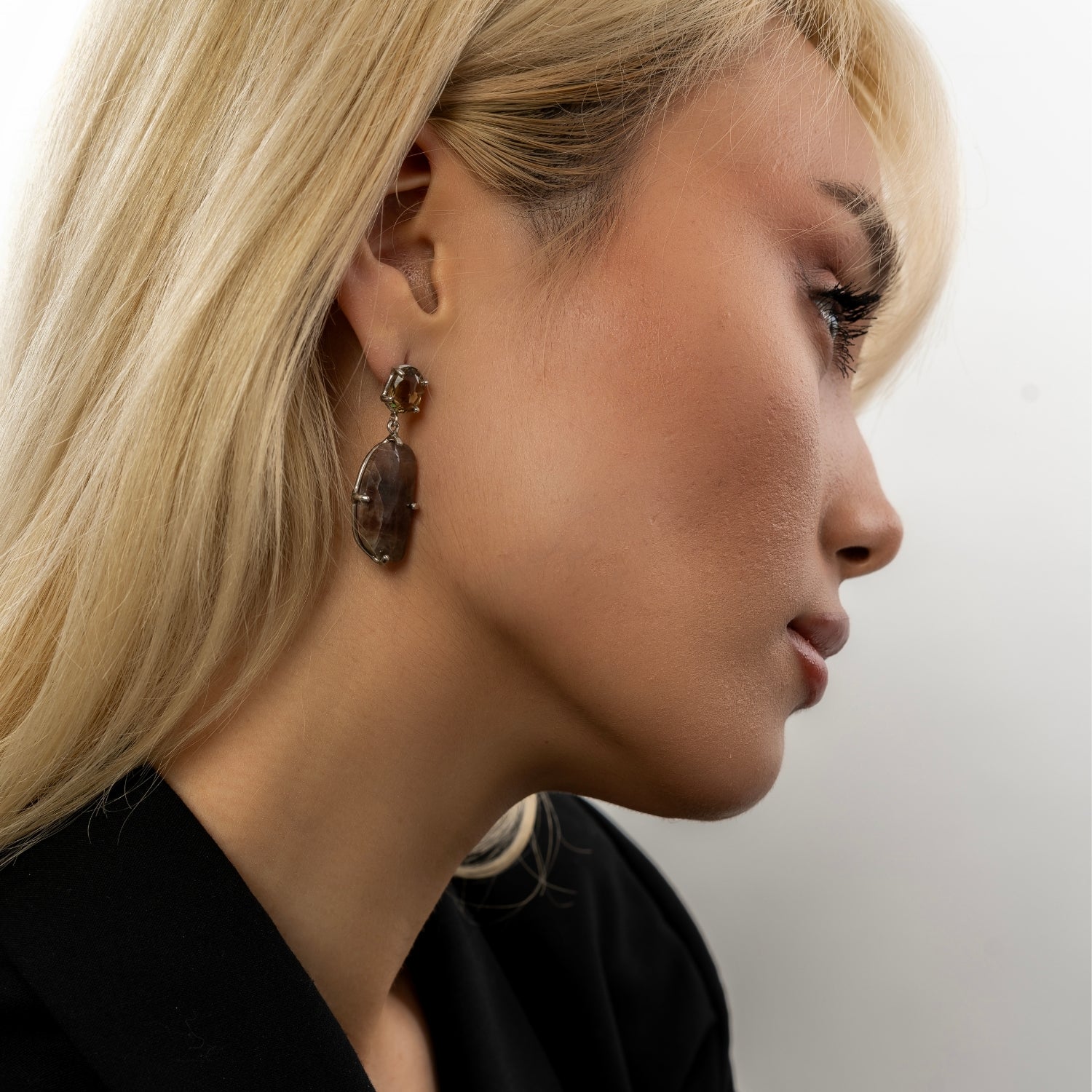 Introducing our Drop Purple Gemstone Silver Earring! These earrings feature a natural irregular gemstone, adding a unique and luxurious touch to any outfit. With their elegant design and exquisite color, they are sure to make a statement. Don't miss out on this stunning piece of jewellery.