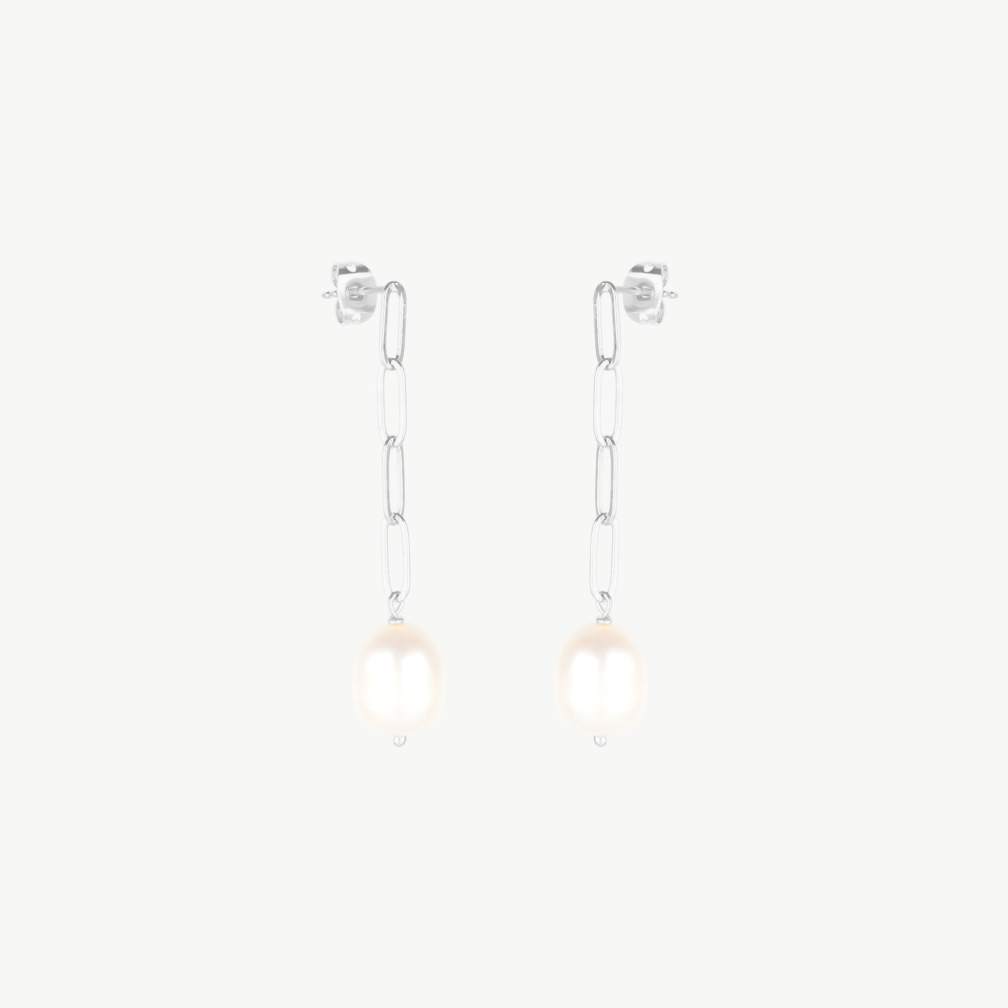 Discover the sophisticated elegance of our Elegant Silver Chain Pearl Drop Earrings. Crafted with high-quality materials, these earrings boast a unique design that effortlessly combines silver chains and stunning pearl drops. Perfect for any occasion, these earrings will add a touch of glamour and refinement to any outfit.
