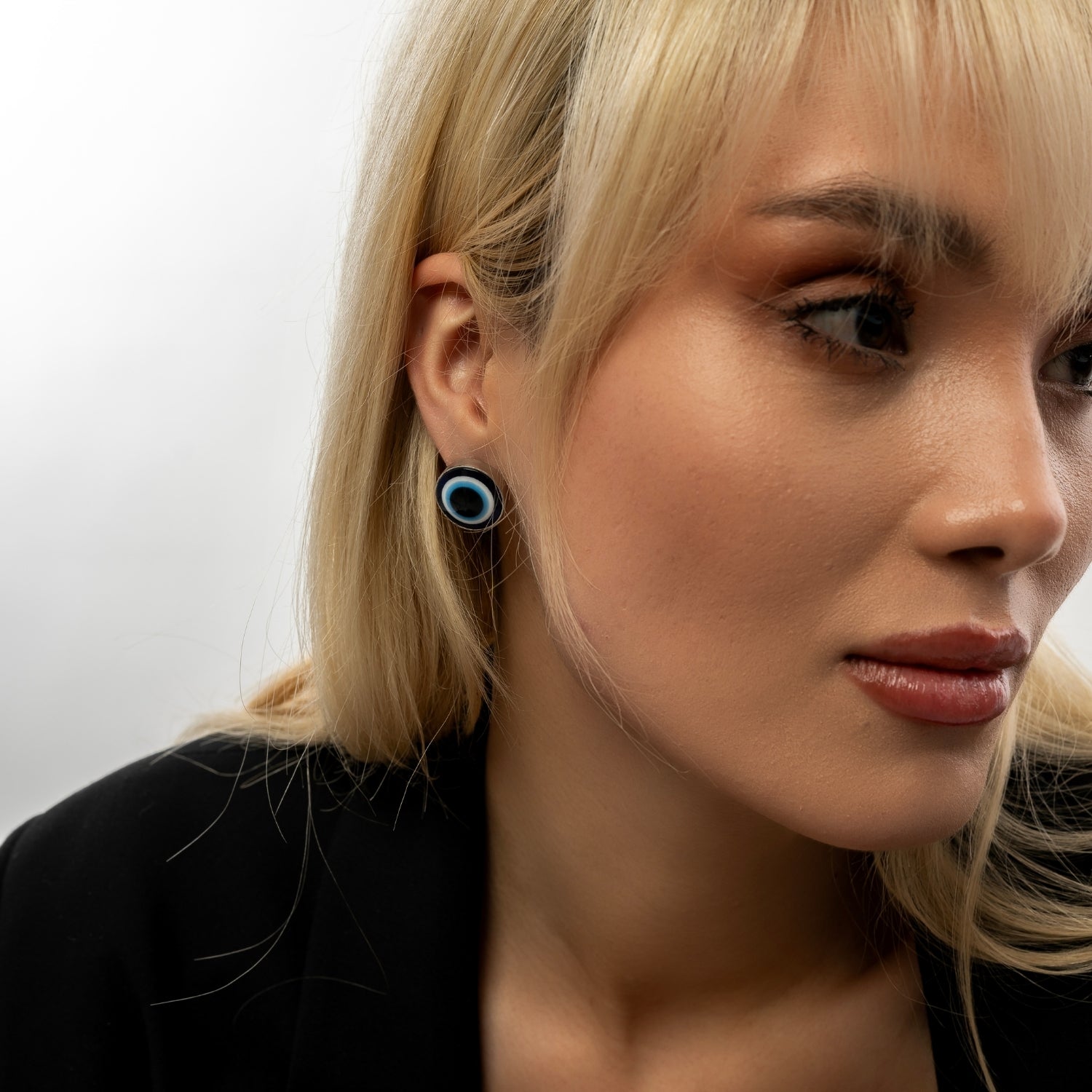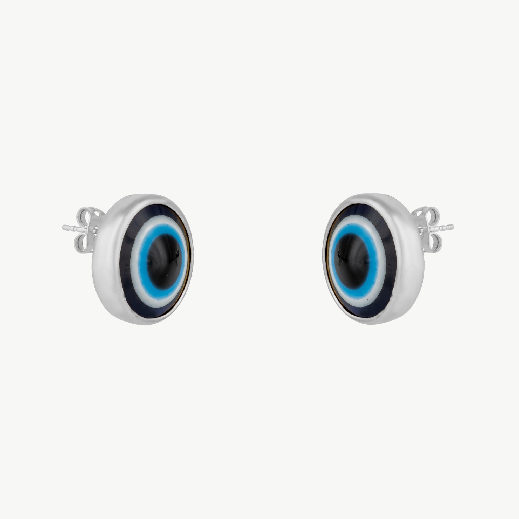 Protect yourself from negative energy with our Evil Eye Stud Earring in Silver. This beautiful accessory is both fashionable and functional, serving as a reminder to always stay positive. Its silver design adds a touch of elegance to any outfit. Perfect for those who believe in the power of positivity!