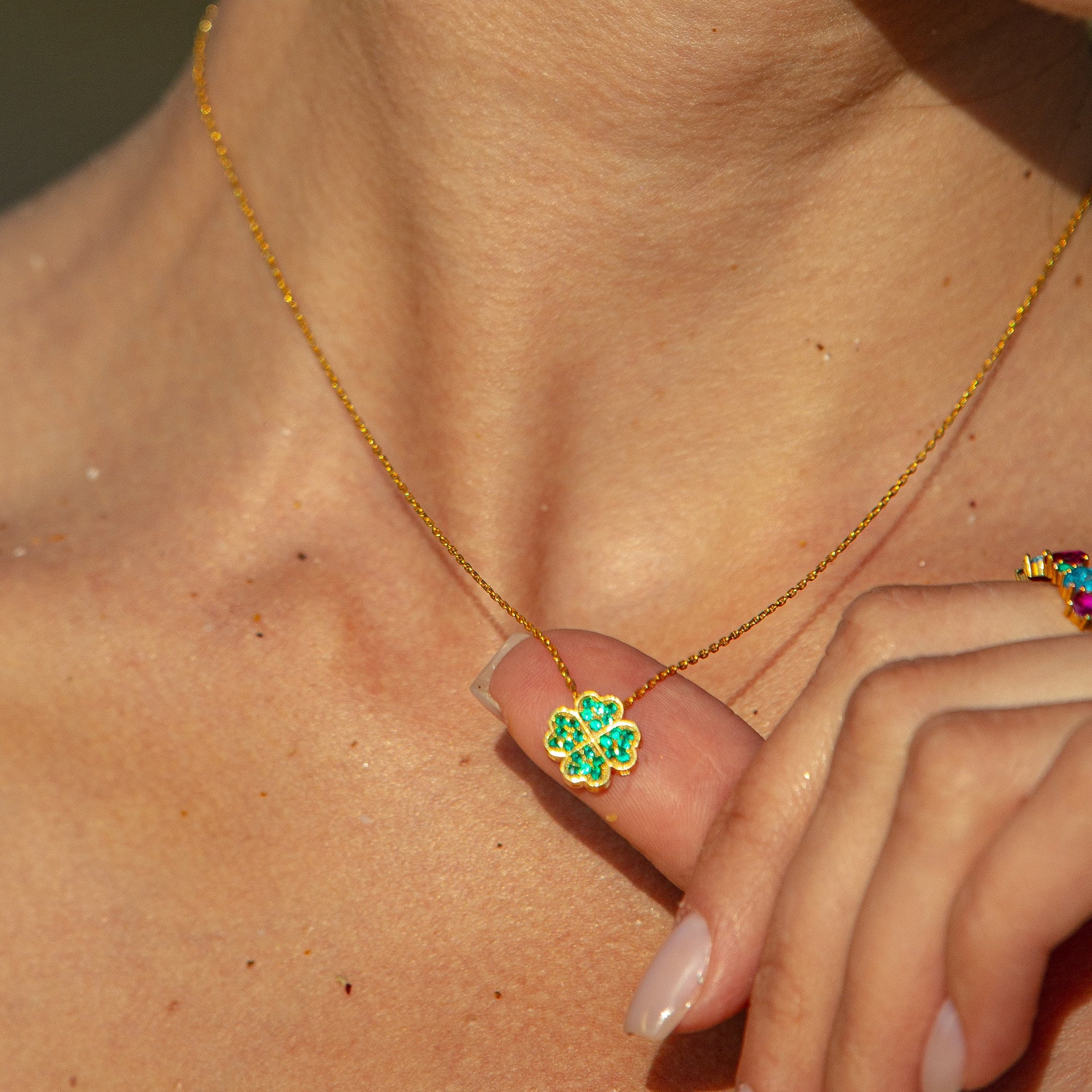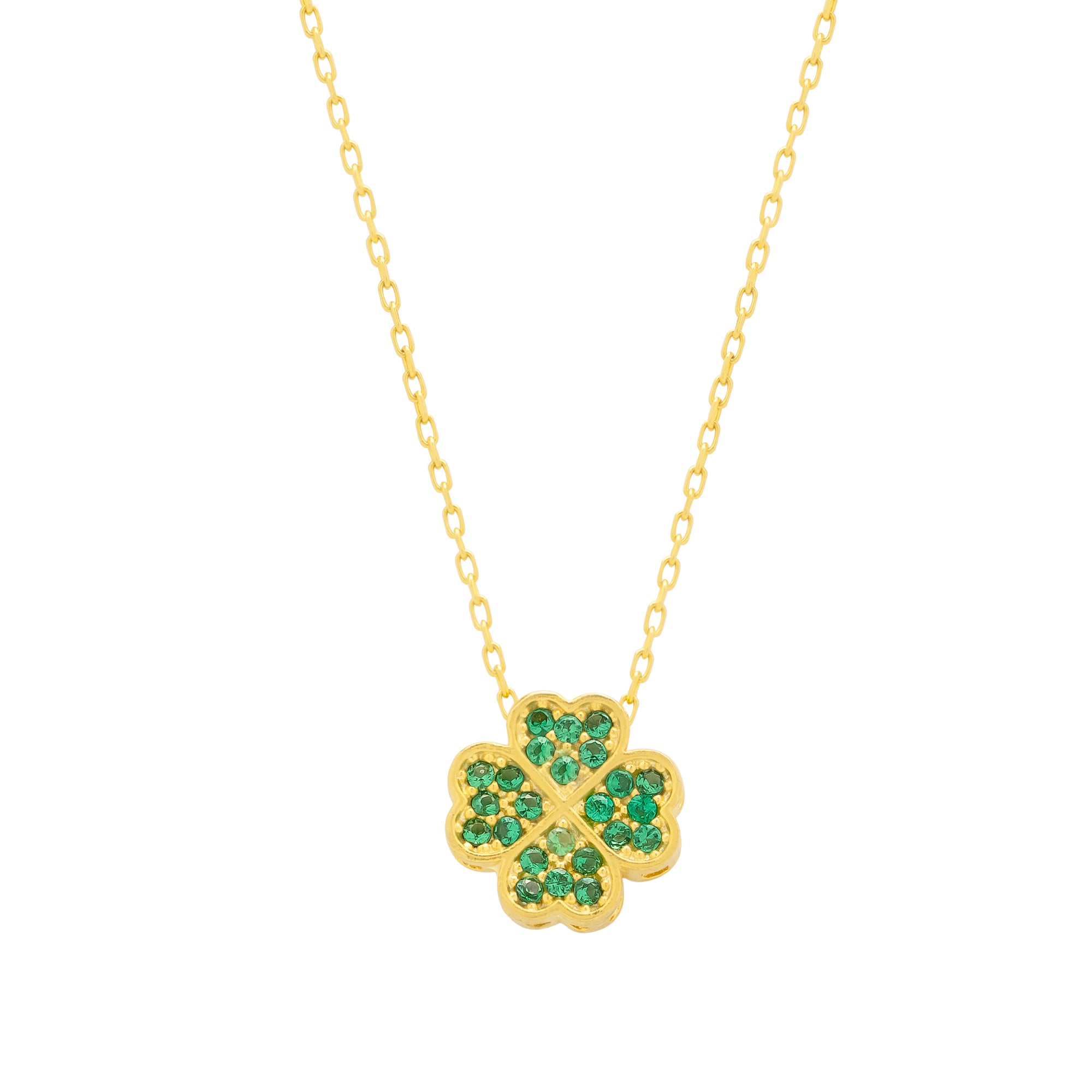 This elegant Four Leaves Clover Necklace is sure to bring you luck and compliments. Adorned with stunning green gemstones, it will add a touch of charm and beauty to any outfit. A perfect gift for anyone who loves unique and meaningful jewellery.