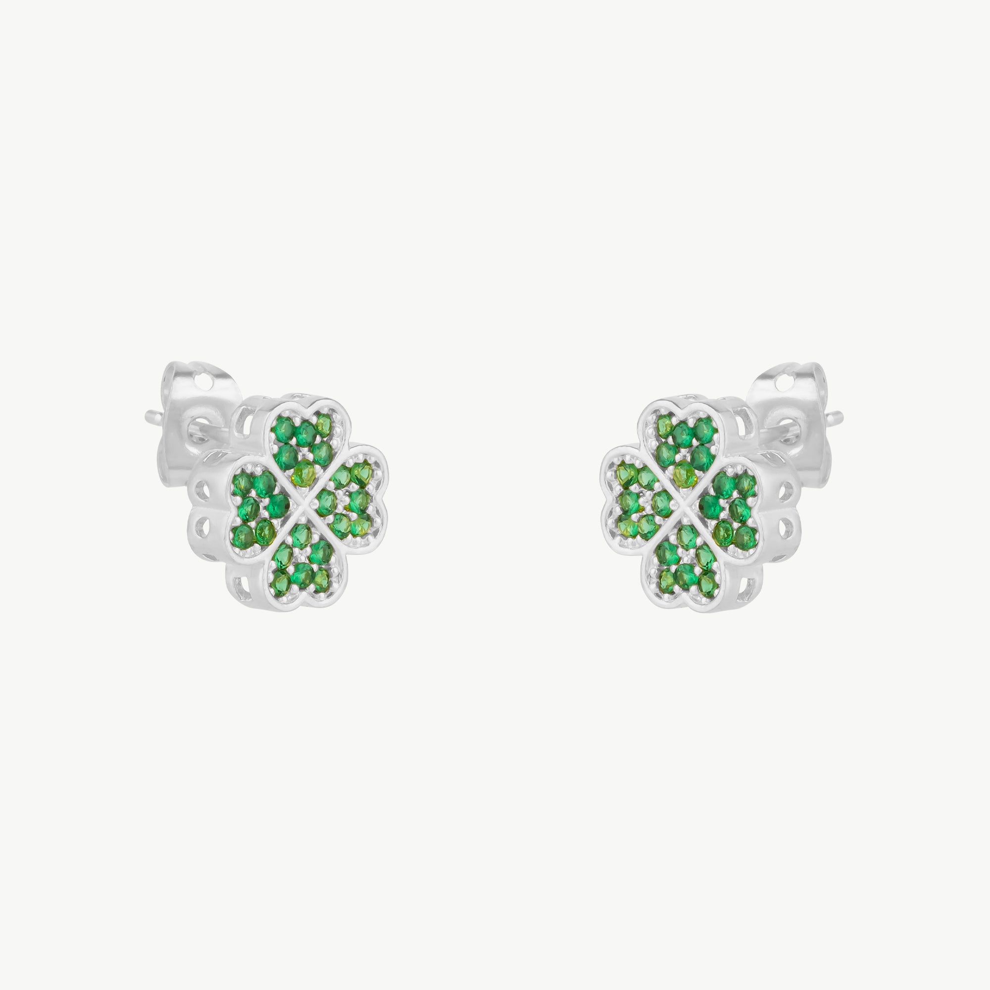 Discover a touch of luck with our Four Leaves Clover Stud Earrings. Designed by AI and handcrafted by humans, these 11mm silver earrings feature green gemstones that will add some sparkle to your look. Bring good fortune and style to any outfit with these unique and beautifully crafted earrings.