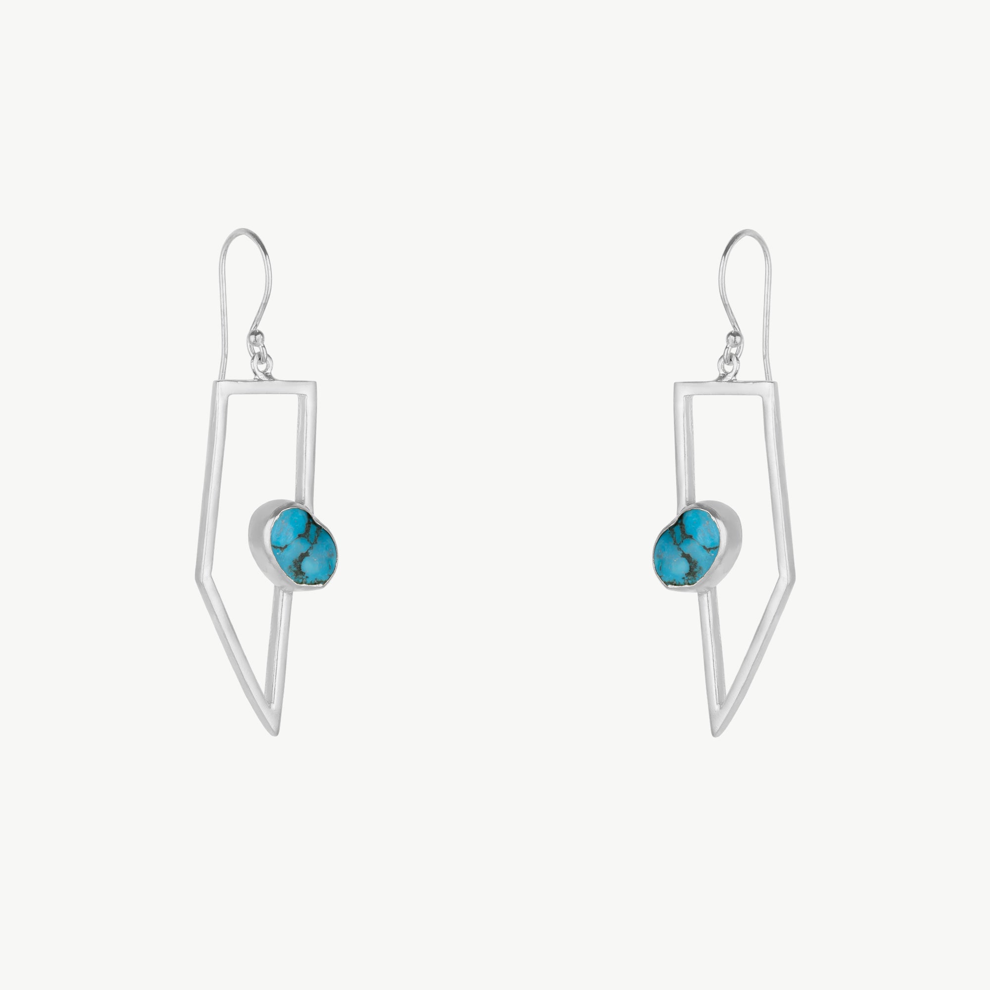 Indulge in these stunning Geometric Oasis Turquoise Drop Silver Earrings, designed with precision by AI technology. The intricate geometric design and vibrant turquoise gemstones will instantly elevate any outfit, making you feel confident and stylish. Embrace the future of fashion with these one-of-a-kind earrings.