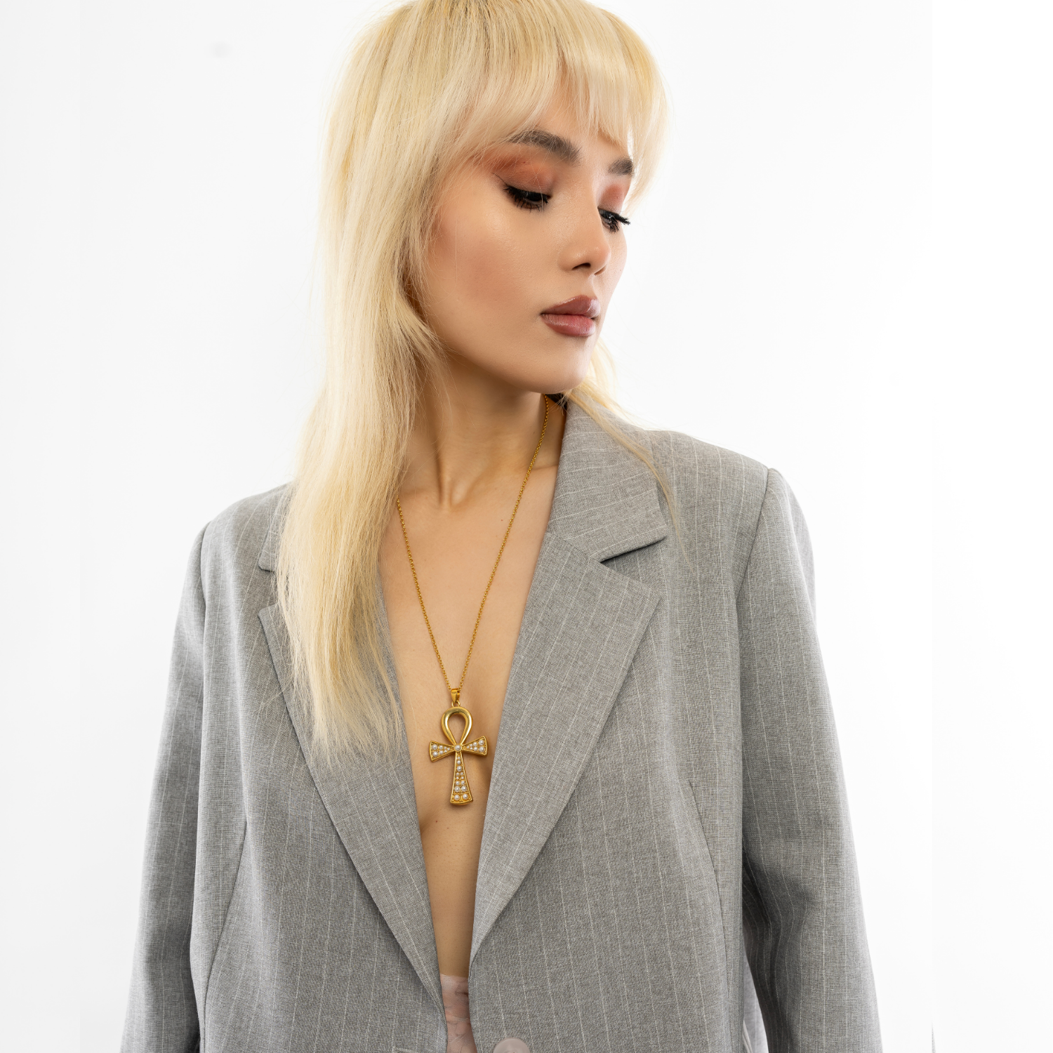 Elevate your style with our Giant Egyptian Cross Ankh Necklace in Gold. This statement piece will add a touch of grandeur and sophistication to any outfit. Show your passion for ancient Egyptian culture and adorn yourself with this beautiful, eye-catching symbol of life and eternal love.