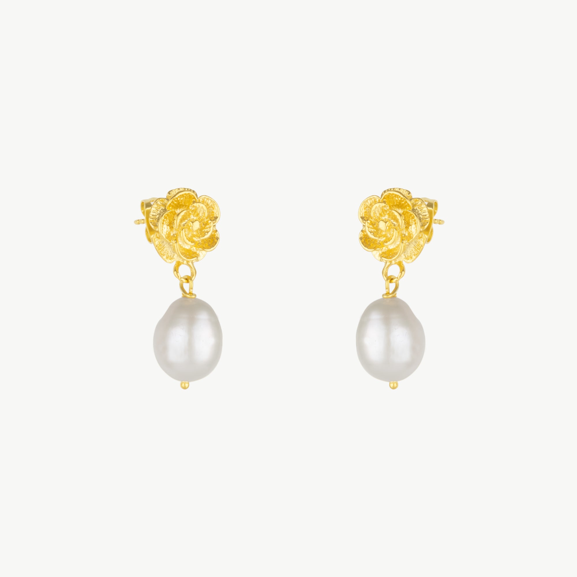 Indulge in luxury with our Golden Rose Pearl Drop Earrings. Featuring golden roses and elegant pearl drops, this accessory will add a touch of sophistication and glamour to any outfit. Elevate your style and make a statement with these beautiful earrings.