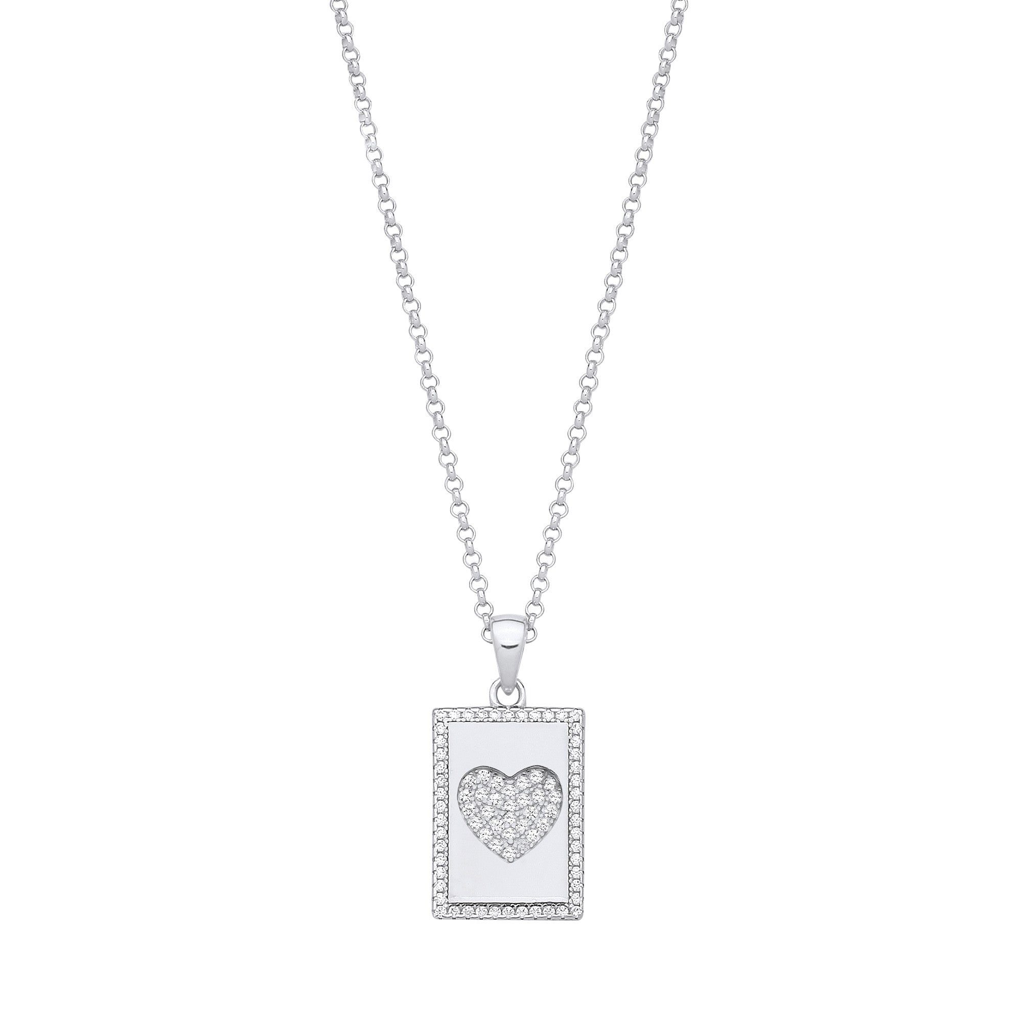 Make a statement of love with our Luxe Heartbeat Pendant, a modern sterling silver dog tag transformed into a sparkling emblem of affection. The bold 24mm x 12mm pendant features a brilliant cubic zirconia heart center, set within a polished silver frame with a substantial 1.8mm depth for luxurious presence. Suspended from a classic 16-inch sterling silver chain, this contemporary design balances edge and romance – perfect for everyday wear with meaning.