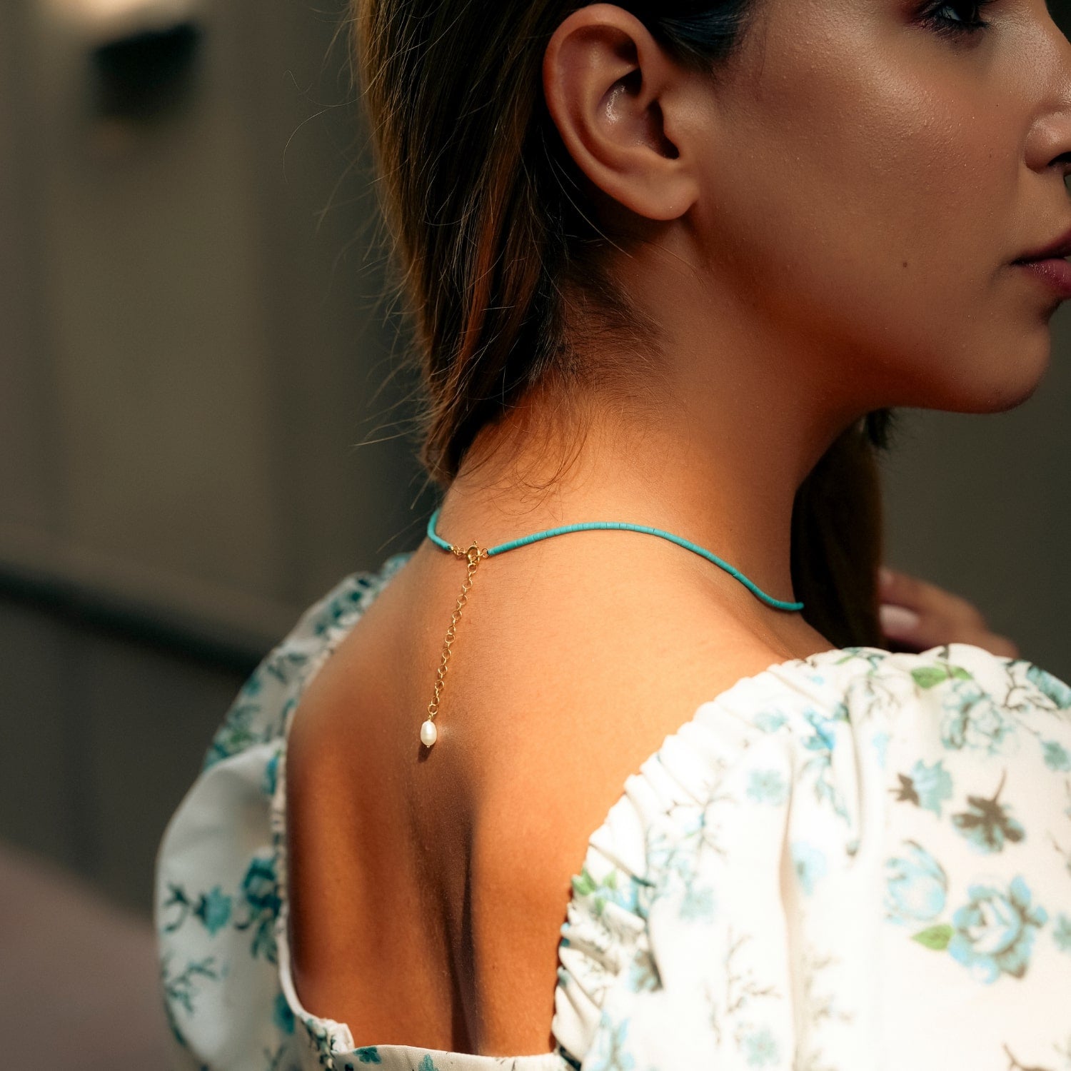 Stunning and timeless, this Natural Turquoise Necklace With Pearl is an elegant addition to any jewelry collection. The vibrant turquoise stone is complemented by a delicate pearl, creating a unique and eye-catching piece. Add a touch of natural beauty to your outfit with this must-have accessory.