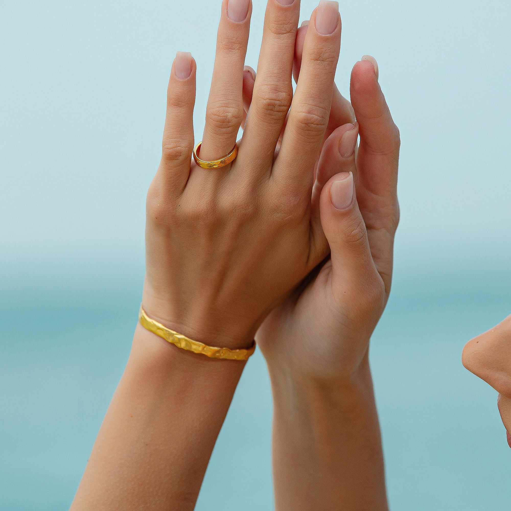 Discover the beauty of our Naturally Textured Thin Cuff Bangle in Gold! Handmade with care and precision, this bangle offers a unique and natural texture that adds a touch of elegance to any outfit. Embrace the beauty of simplicity and elevate your style with this timeless piece.