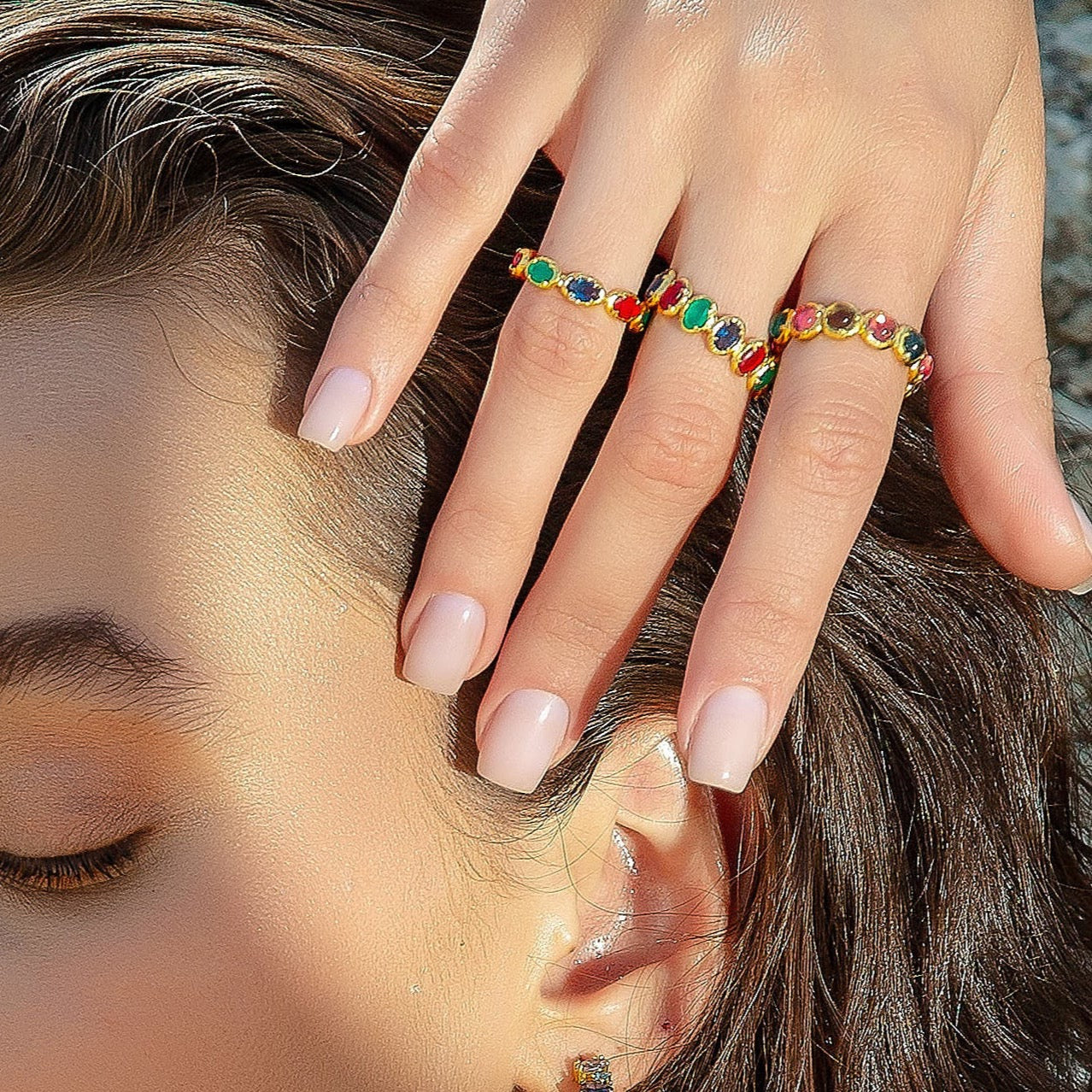 Indulge in timeless elegance with our Oval Eternity Gold Gemstone Ring. Featuring an oval cut gemstone set in a stunning gold band, this ring exudes luxury and sophistication. Perfect for any occasion, it adds a touch of glamour to any outfit. Elevate your jewellery collection with this exquisite piece.