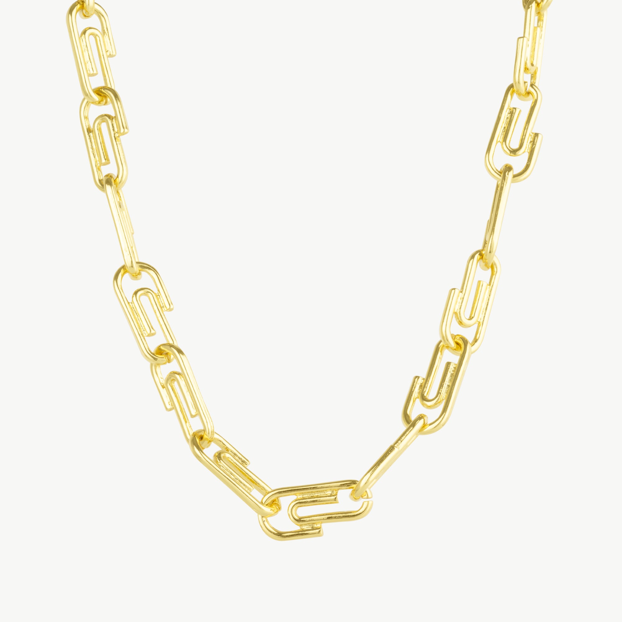 Elevate your style with our Paperclip Chain Gold Designer Necklace! Made of high-quality materials, its unique design will add a touch of luxury to any outfit. Perfect for a special occasion or everyday wear, this necklace is a must-have for any fashion-forward individual. Upgrade your jewelry collection today!