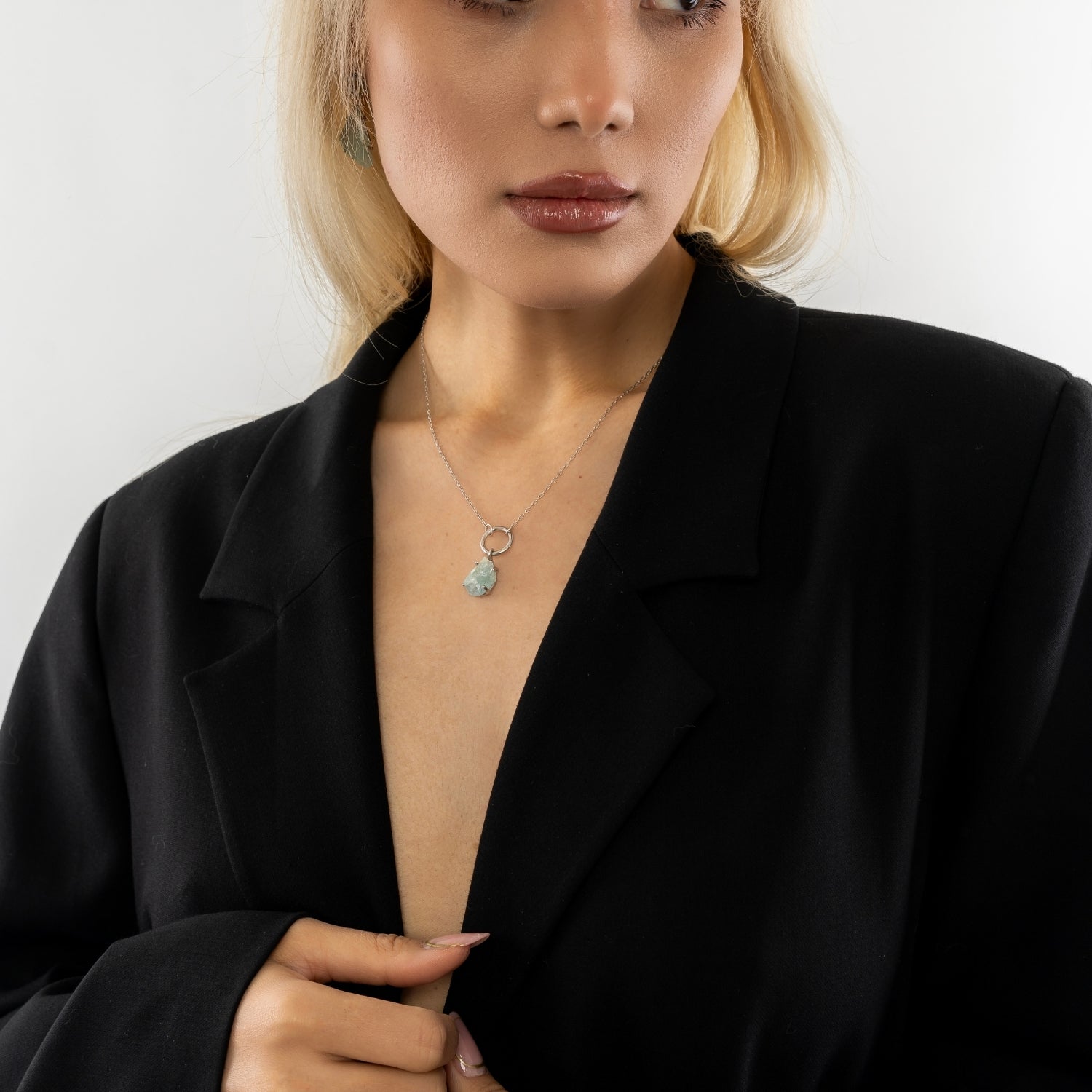This Raw Chalcedony Gemstone Pendant Chain Link Silver Necklace features a natural gemstone that directly touches the body, providing potential benefits. Chalcedony is known for its calming and soothing properties, believed to reduce stress and promote emotional balance. It is also thought to enhance communication and improve self-perception. With minimal processing, this RAW gemstone is perfect for anyone seeking a natural and beneficial accessory. Embrace the beauty and health benefits of this unique necklace today!