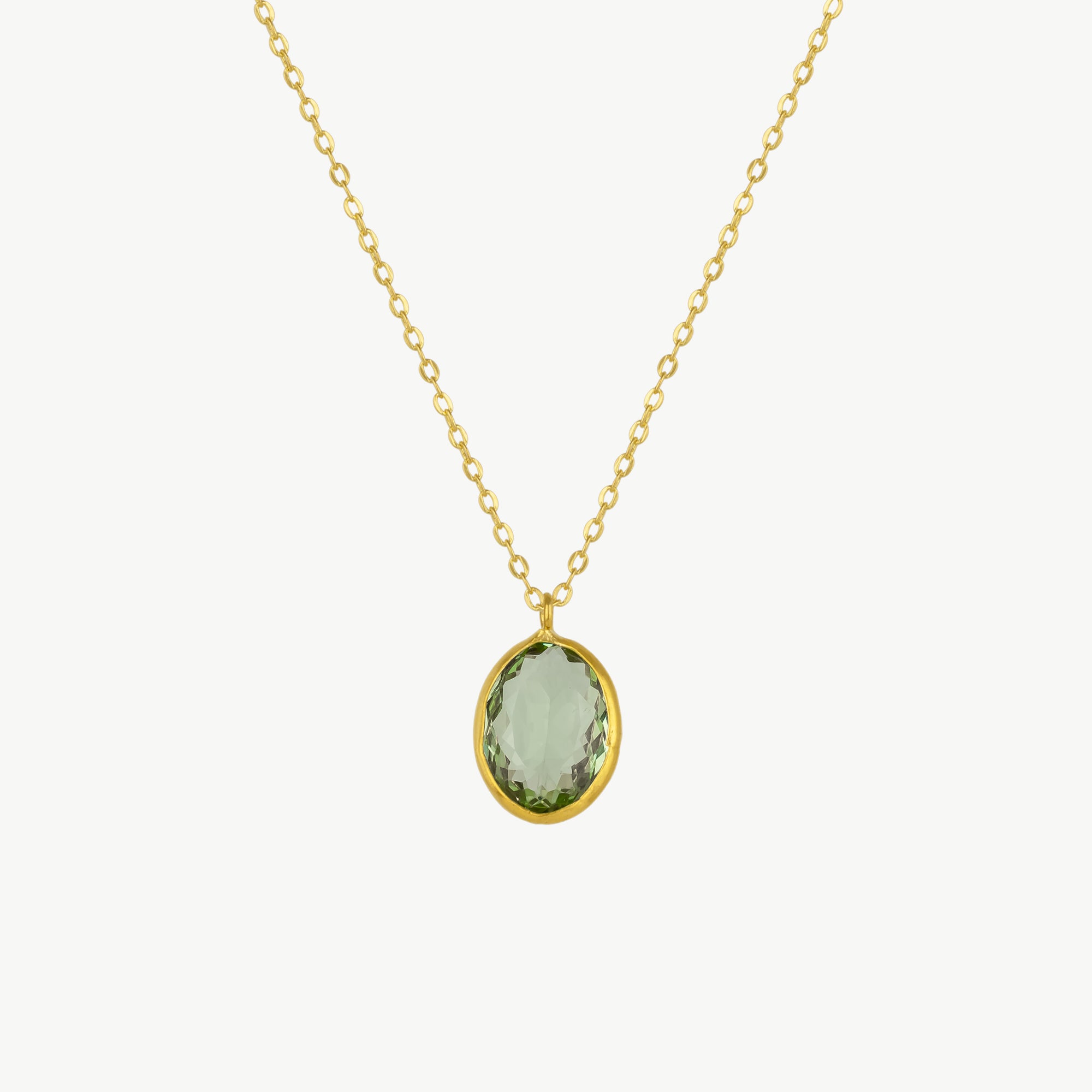 This stunning Abstract Oval Gem Gold Pendant Necklace in Aqua Green is the perfect accessory to elevate any outfit. The abstract oval gem design adds a touch of sophistication and the rich aqua blue color will catch the eye and inspire envy. Make a statement with this beautiful necklace!