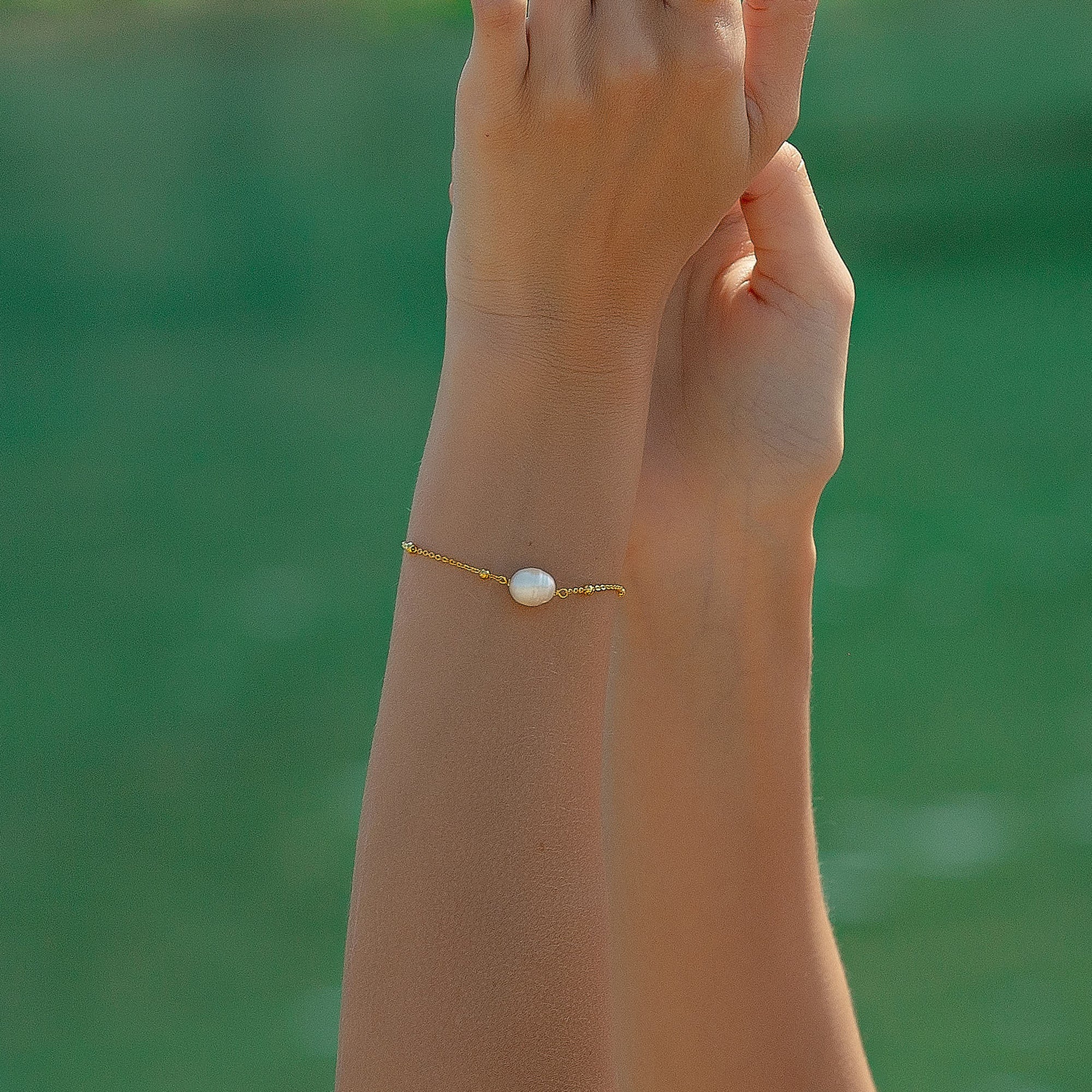 Add instant elegance to any outfit with our Single Pearl Beaded Chain Gold Bracelet. Made with a stunning single pearl and delicate silver chain, this bracelet adds a touch of sophistication to your look. Elevate your style and exude confidence with this must-have accessory!