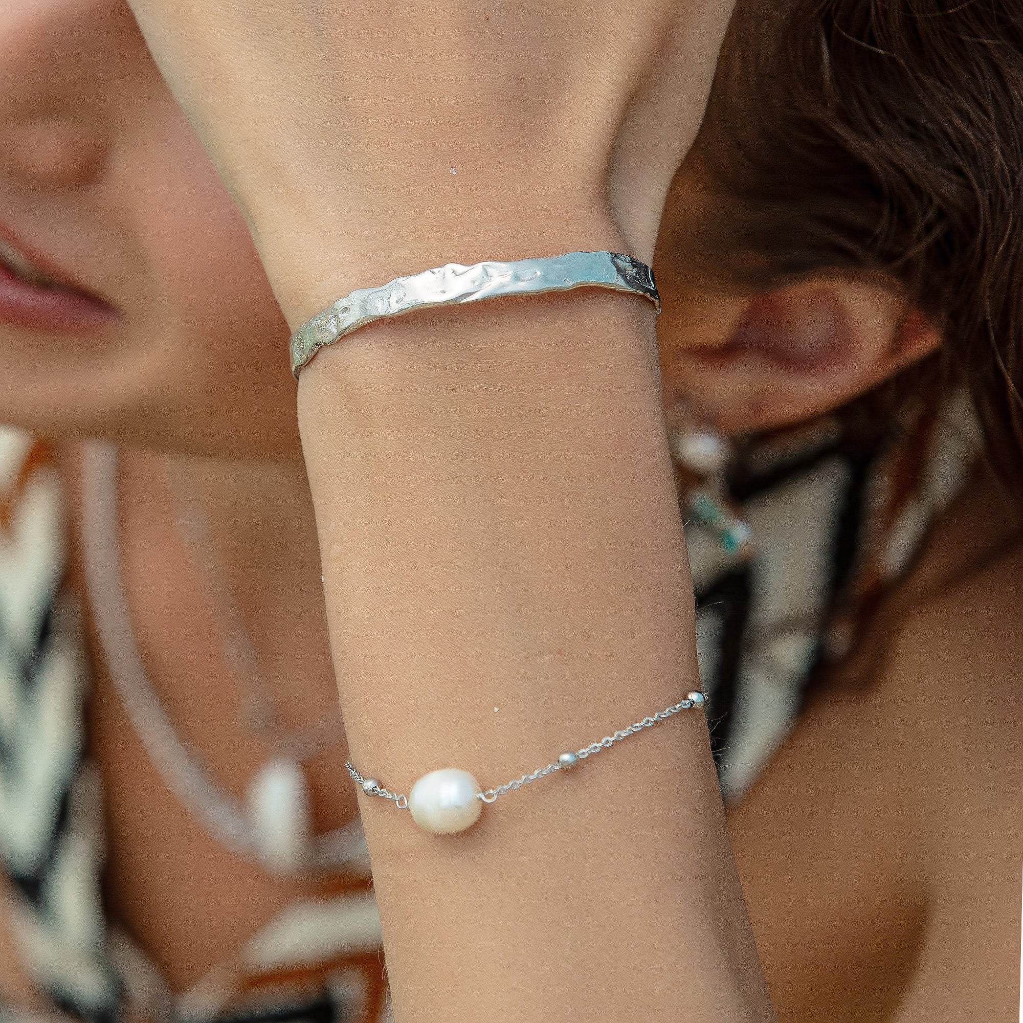 Add instant elegance to any outfit with our Single Pearl Beaded Chain Silver Bracelet. Made with a stunning single pearl and delicate silver chain, this bracelet adds a touch of sophistication to your look. Elevate your style and exude confidence with this must-have accessory!