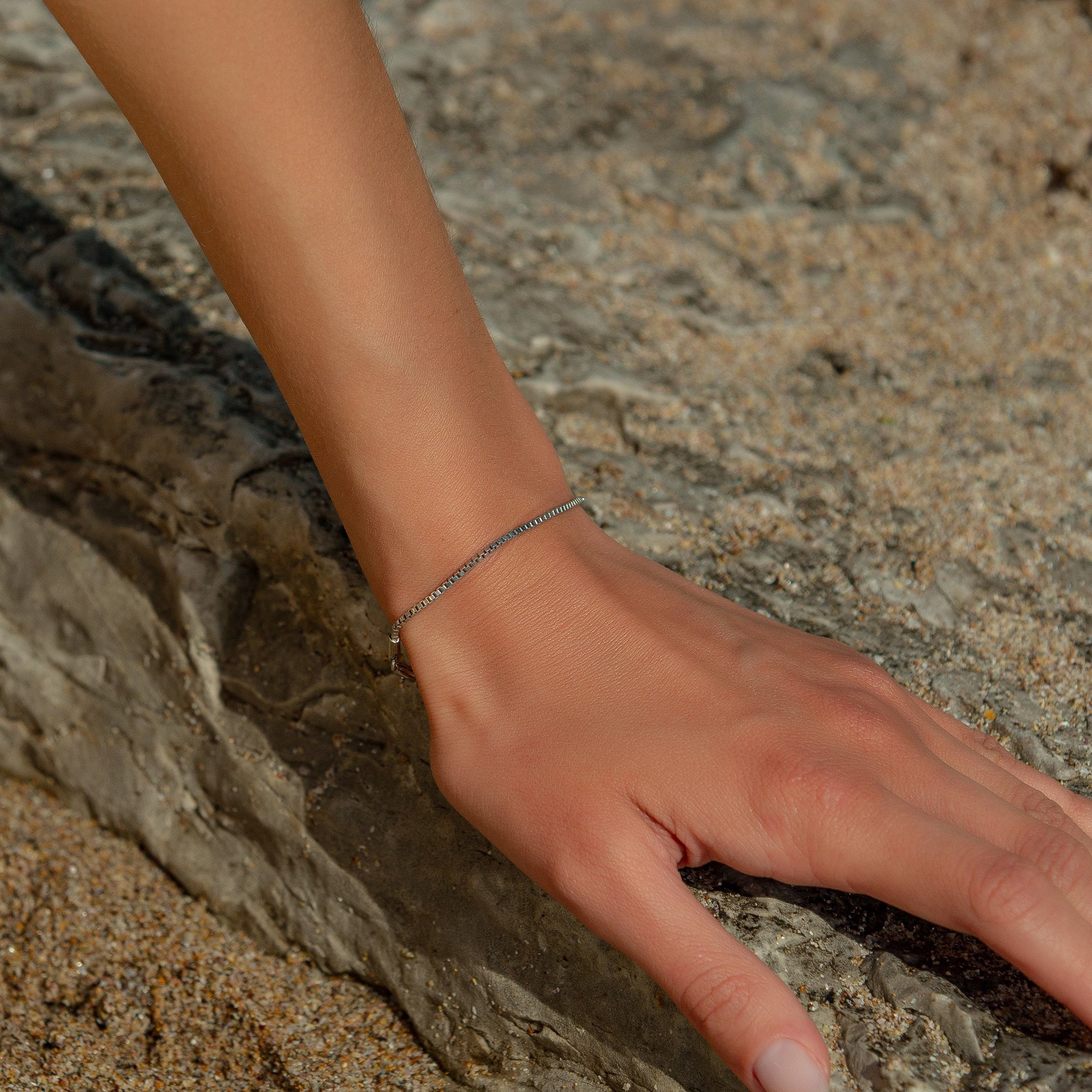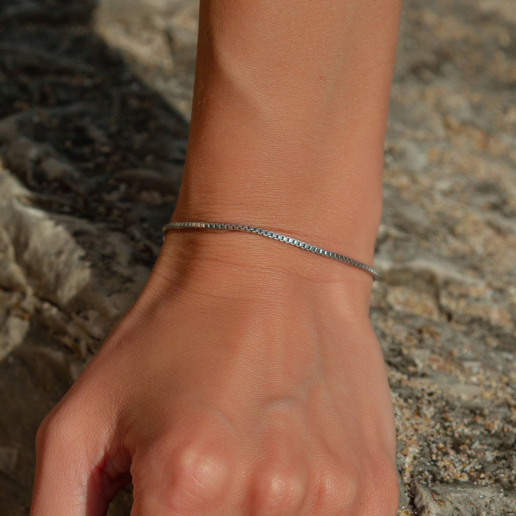 Elevate your style with our Tiny Cubicle Silver Chain Bracelet. Made from premium materials, this bracelet is designed for everyday wear. Feel confident and stylish with its sleek and minimalist design. Perfect for any occasion, this bracelet will add the perfect touch of elegance to any outfit. Stand out in style with our Tiny Cubicle Silver Chain Bracelet.