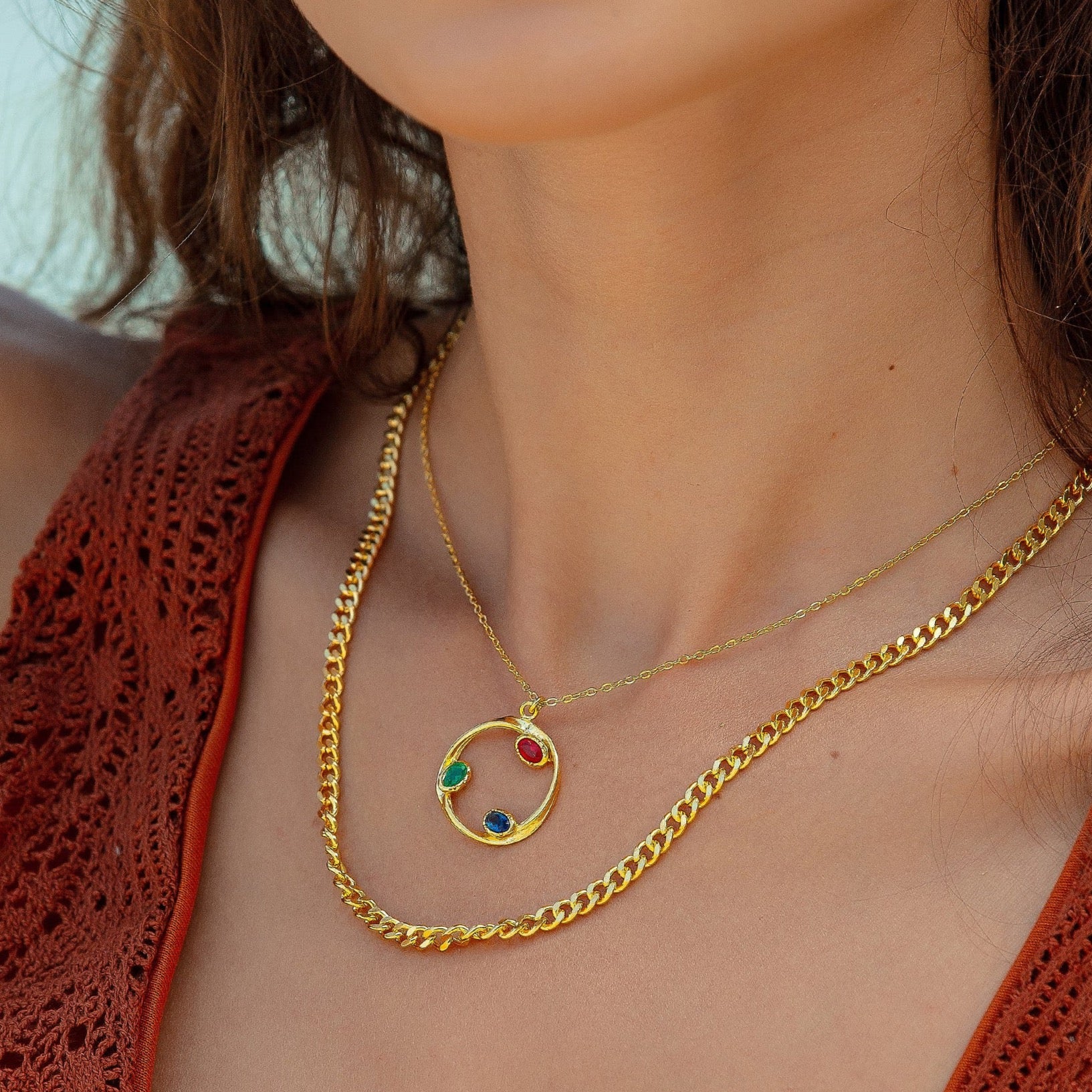 Bring harmony and style to your outfits with our Tri-Gem Harmony Gold Pendant and Large Cuban Chain Necklace Layering Set! This elegant set features a stunning tri-gem pendant and a versatile large cuban chain, adding a touch of luxury and sophistication to any look. Elevate your wardrobe and radiate confidence with this must-have set.