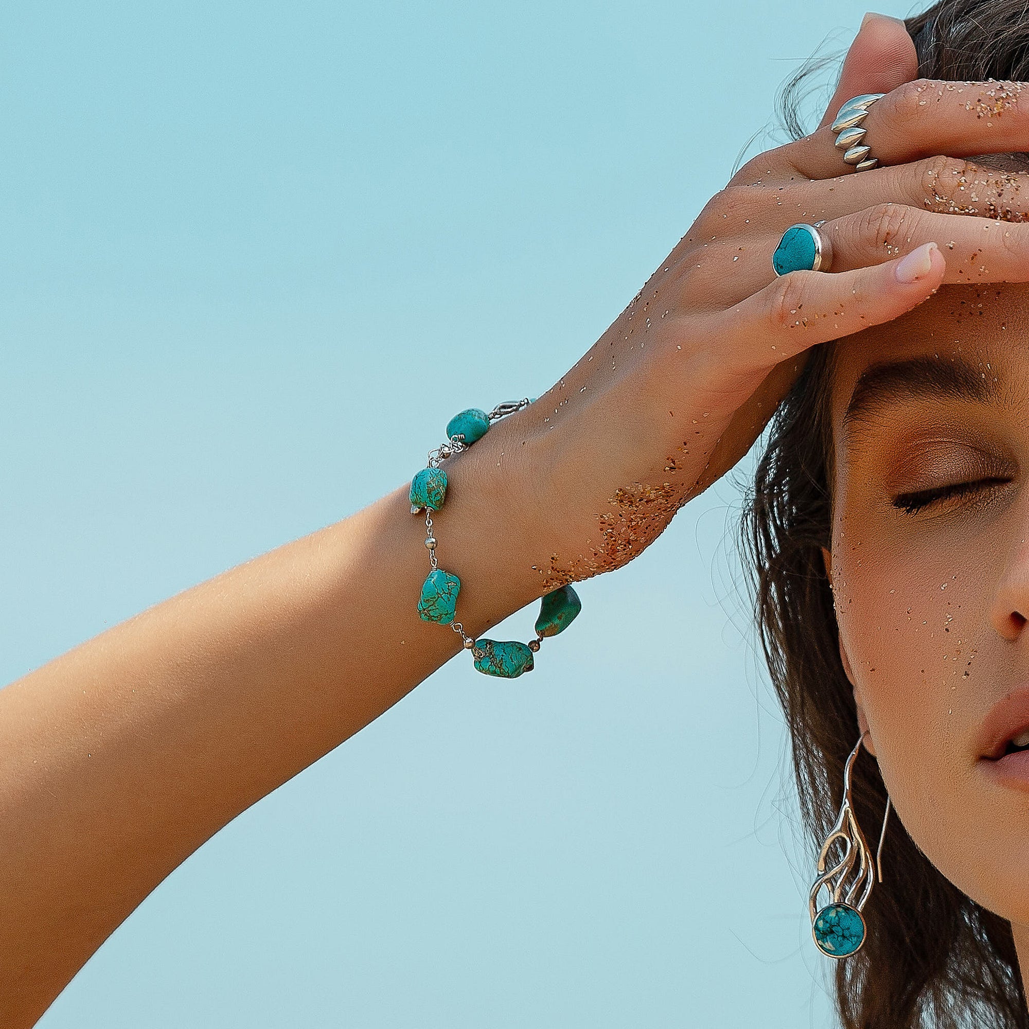 Every Turquoise gemstone is naturally unique in its irregularity; imperfections are here to be celebrated.