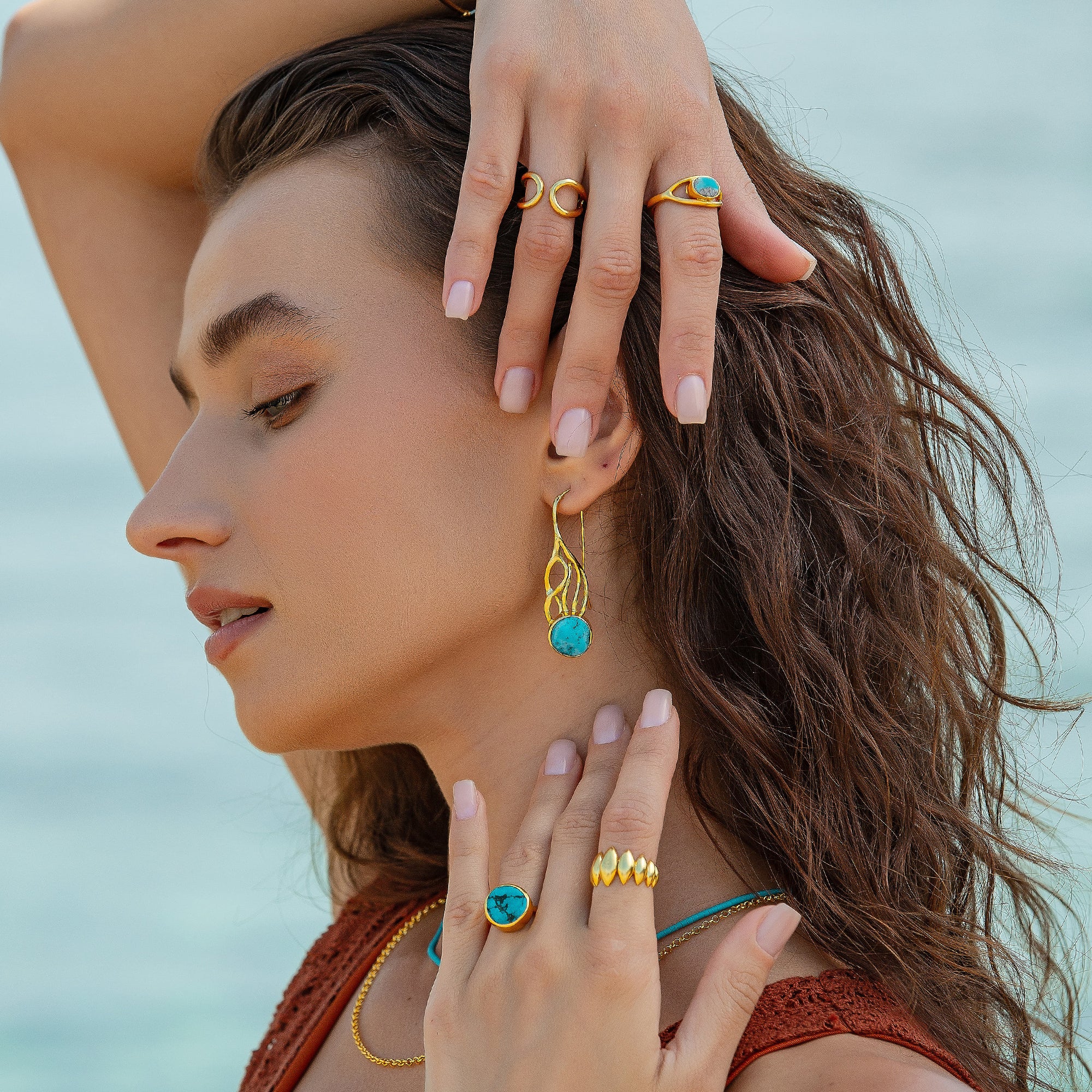 Every Turquoise gemstone is naturally unique in its irregularity; imperfections are here to be celebrated.
