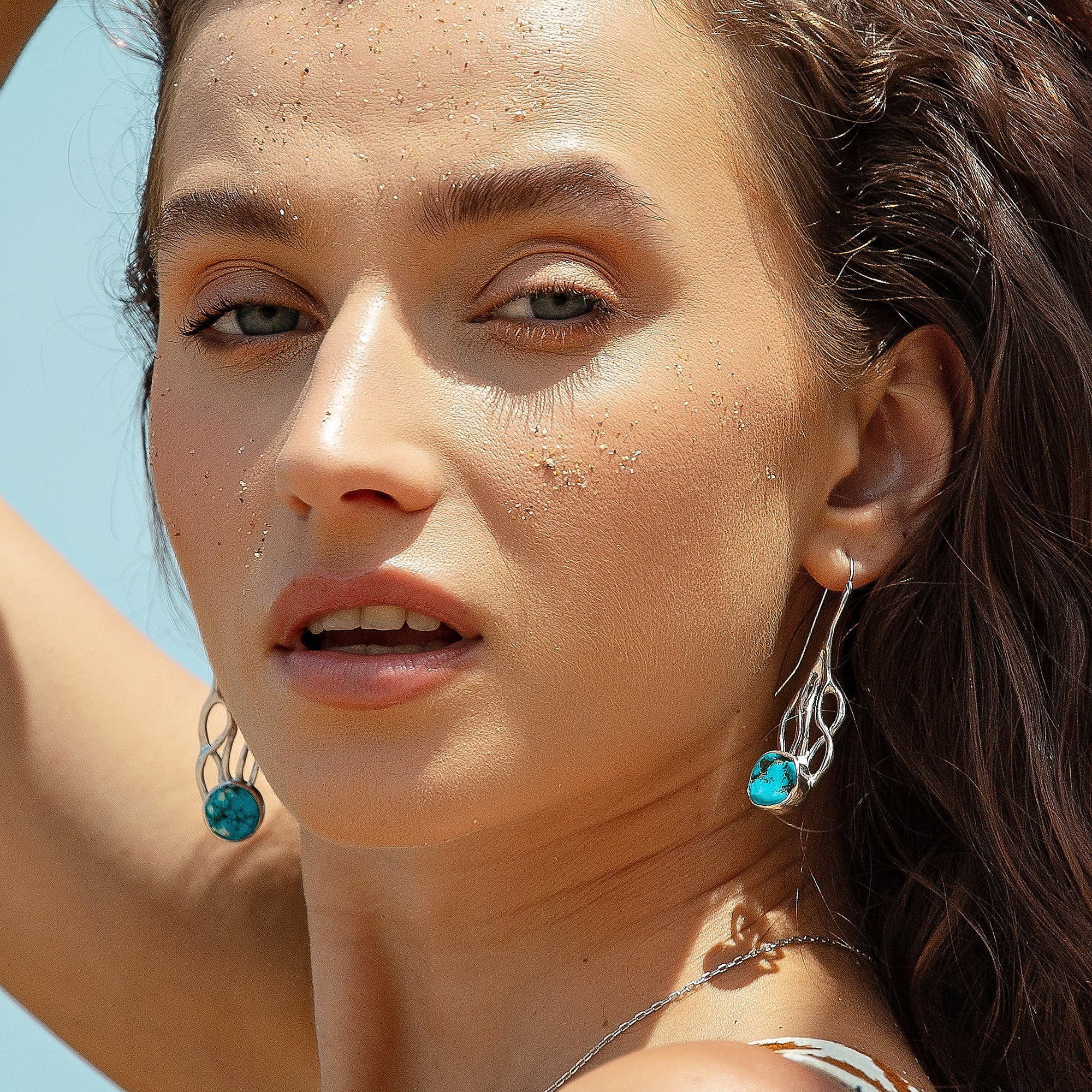 These stunning Turquoise Silver Grain Wavy Drop Earrings will add a touch of elegance to any outfit. Individually crafted with genuine turquoise and silver grains, these earrings are sure to catch the eye and become a staple in your jewelry collection. Elevate your style with these beautiful and unique earrings.